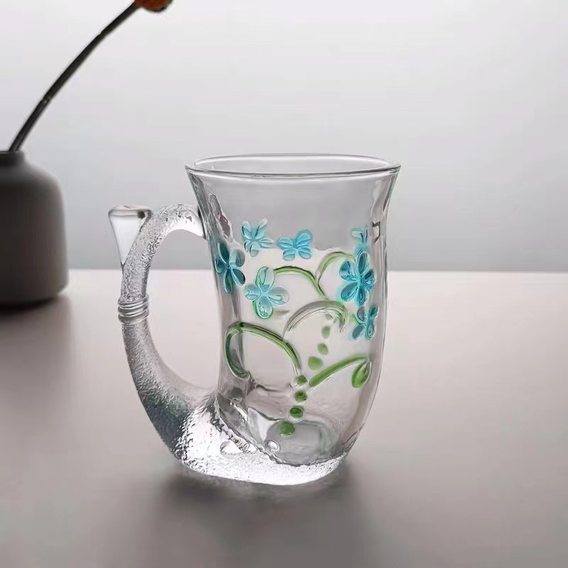 和風浮彫り人魚カップ クリエイティブマグカップ フラワーティーカップ コーヒー飲料 ミルクカップ 耐熱ガラスカップ