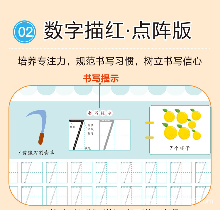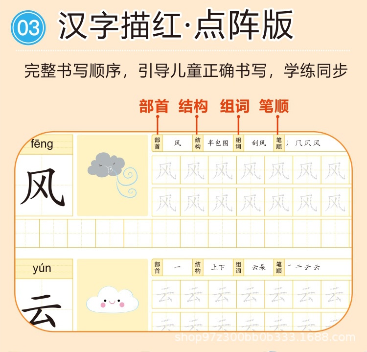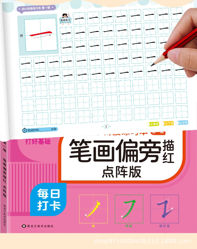 カラー 漢字描赤ドット版,ピンイン描赤ドット版,デジタル描赤ドット版,筆画の横に赤いドットを描きます。,十法を借りる,湊十法