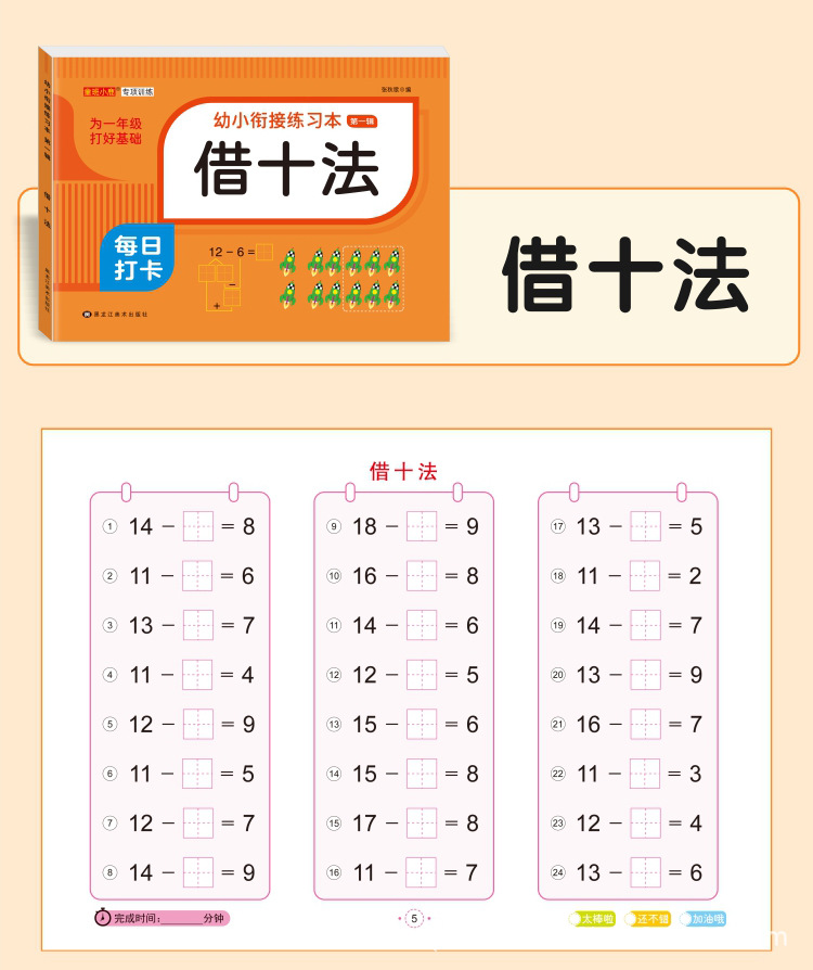 幼い子供が一日に言語ピンイン数学加減算練習帳を練習する前に加減算訓練を準備する