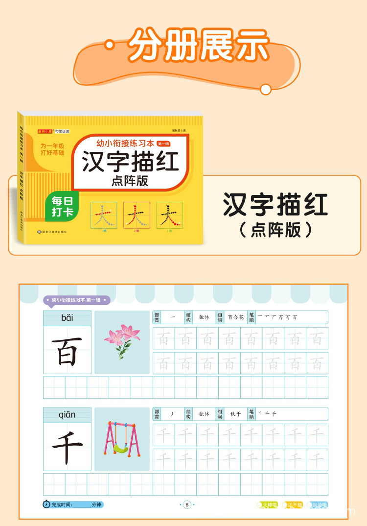児童控筆練習点陣描紅本学前1200字8冊入学前漢字描紅幼児練字帖