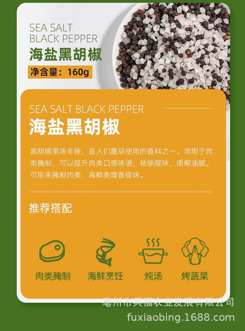 海塩と黒胡椒の組み合わせ、レモンミックス調味料、黒胡椒パスタ調味料、海塩粒、挽き瓶卸売