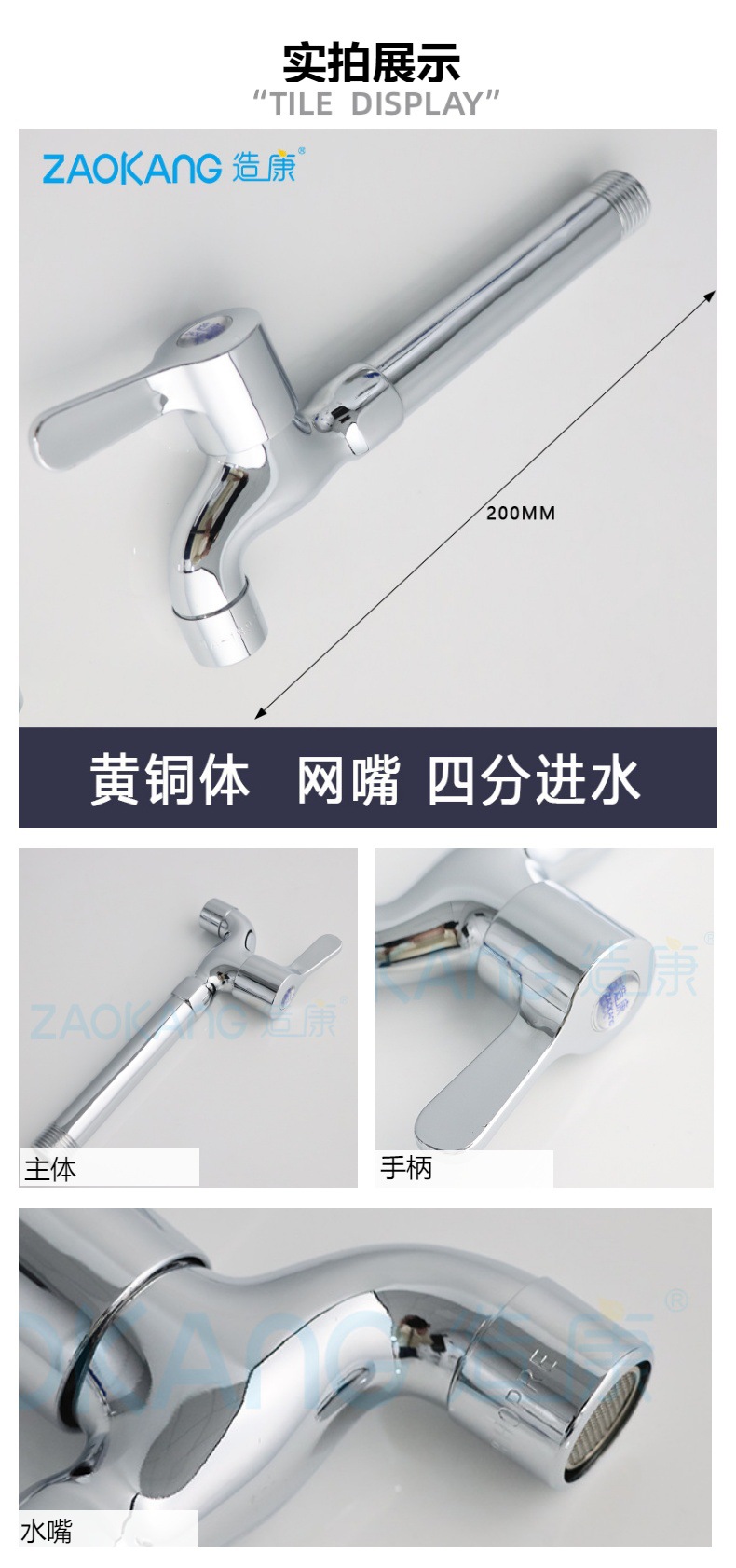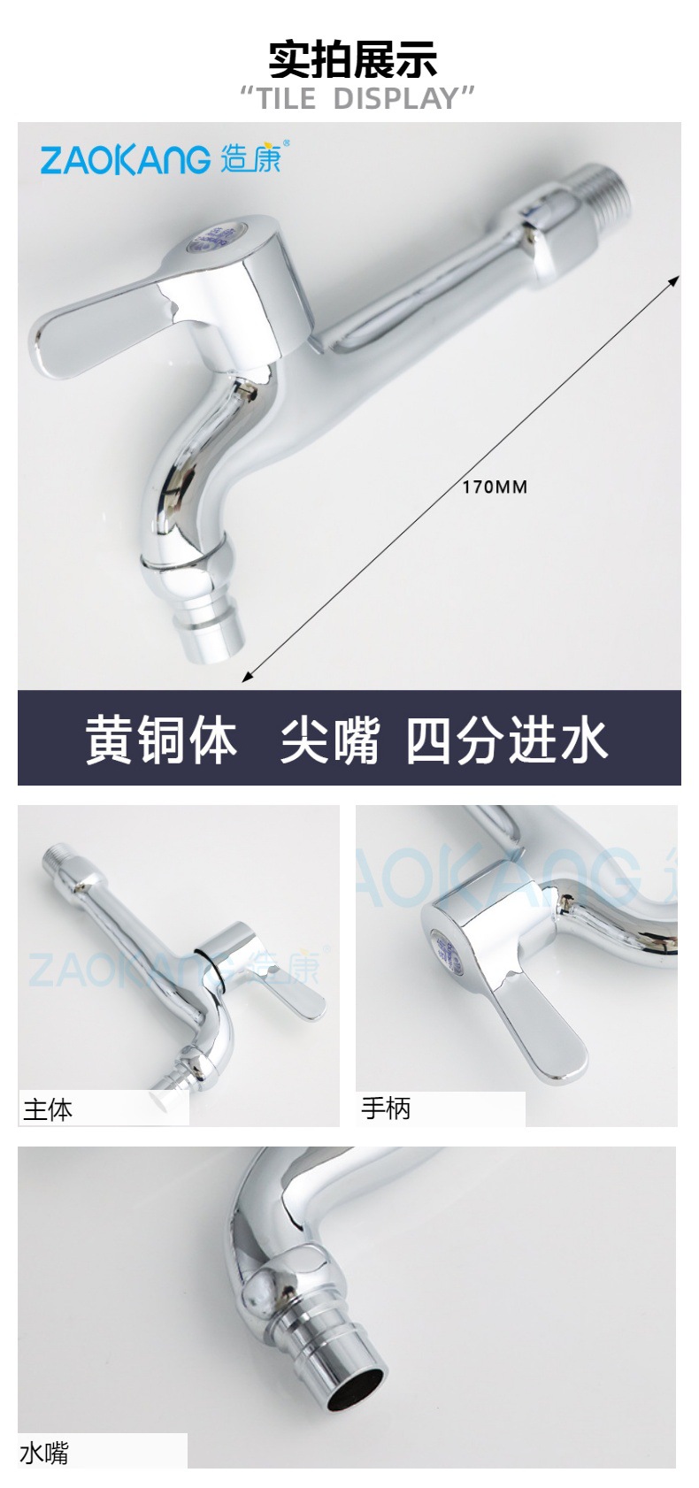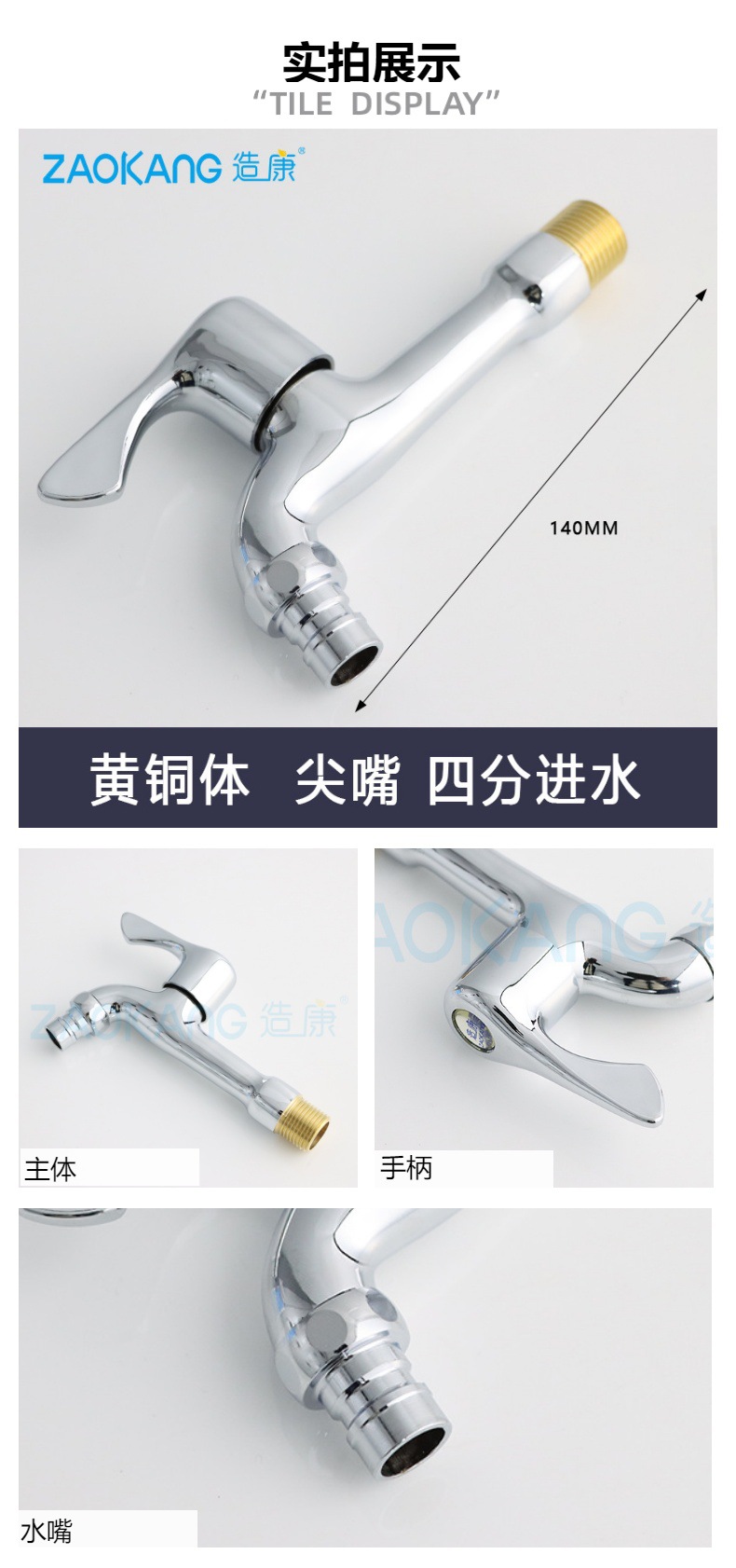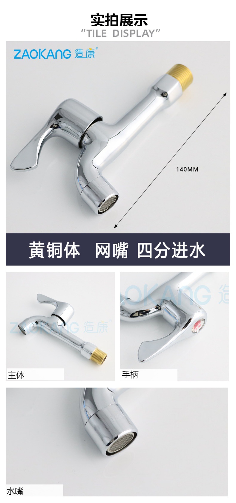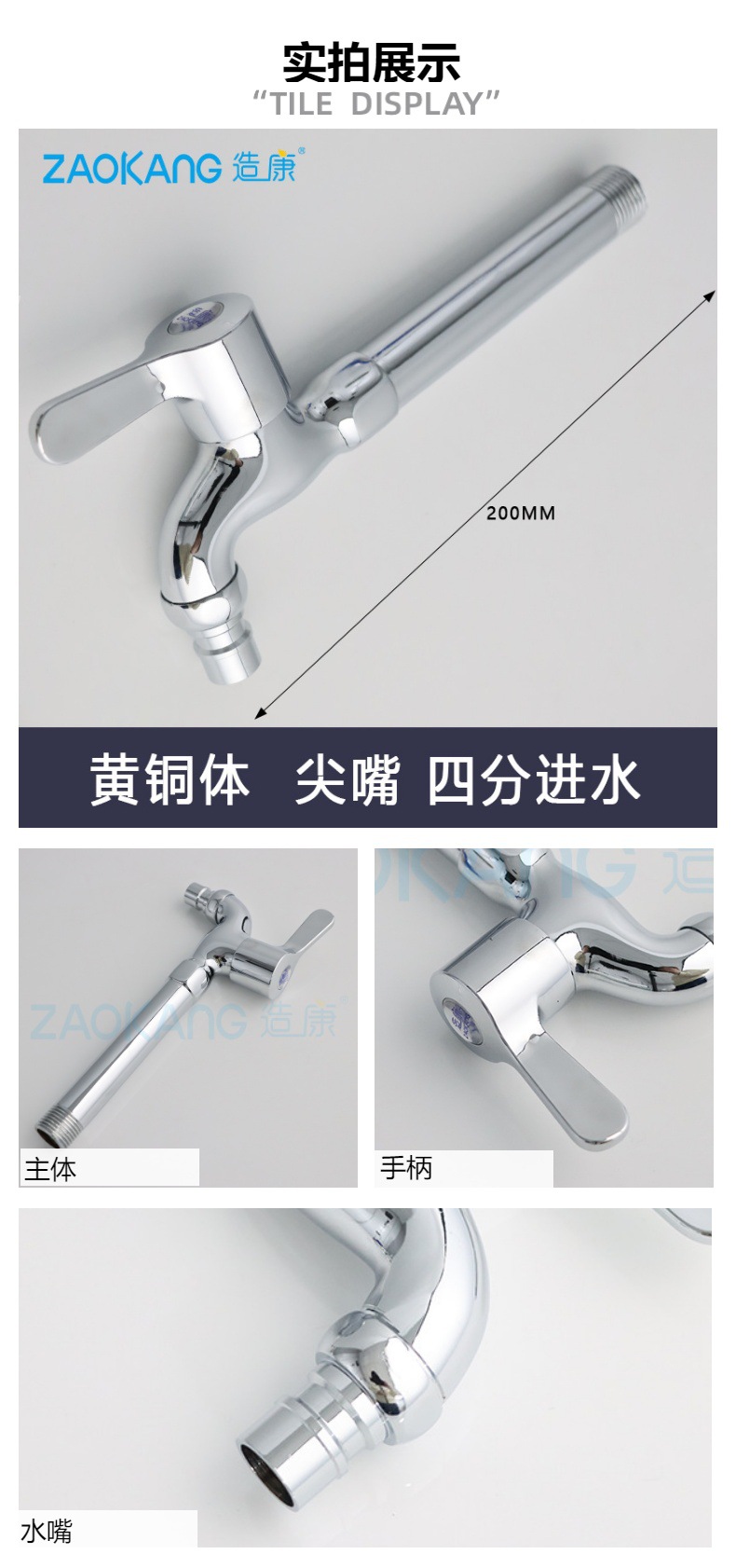 Zaokang 超長洗濯機の蛇口全銅ボディクイックオープン蛇口壁内シングルコールドバスルームバルコニーモッププール