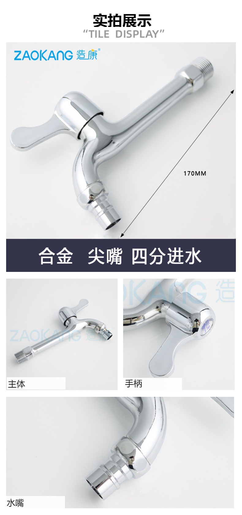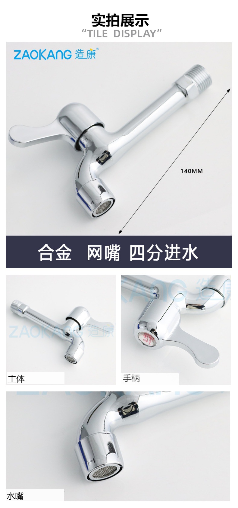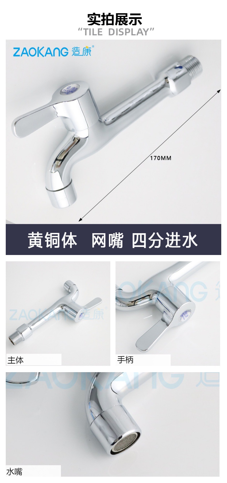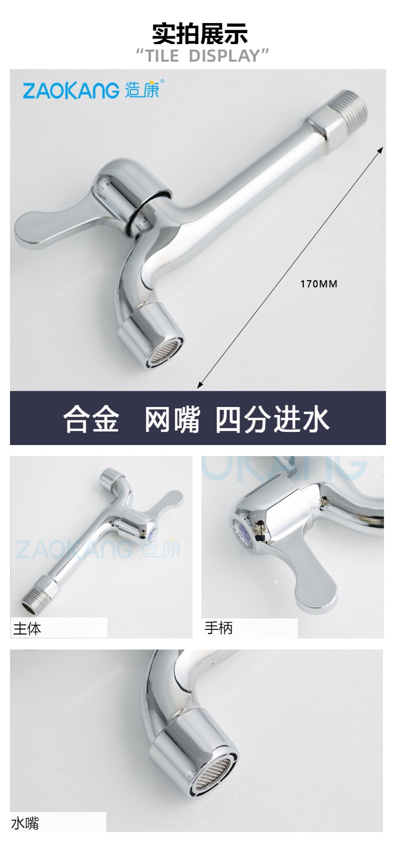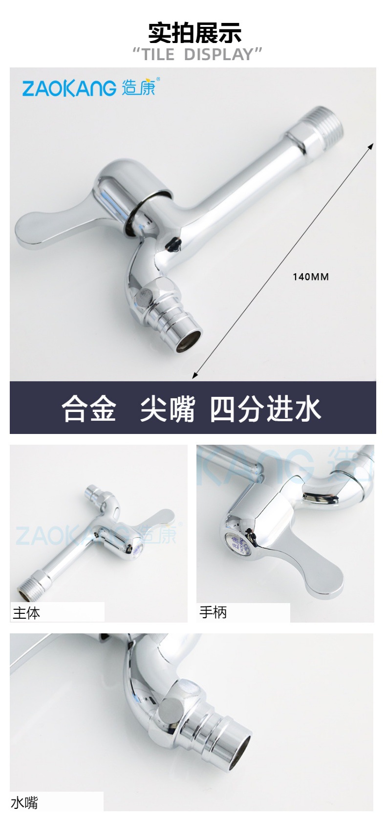 Zaokang 超長洗濯機の蛇口全銅ボディクイックオープン蛇口壁内シングルコールドバスルームバルコニーモッププール