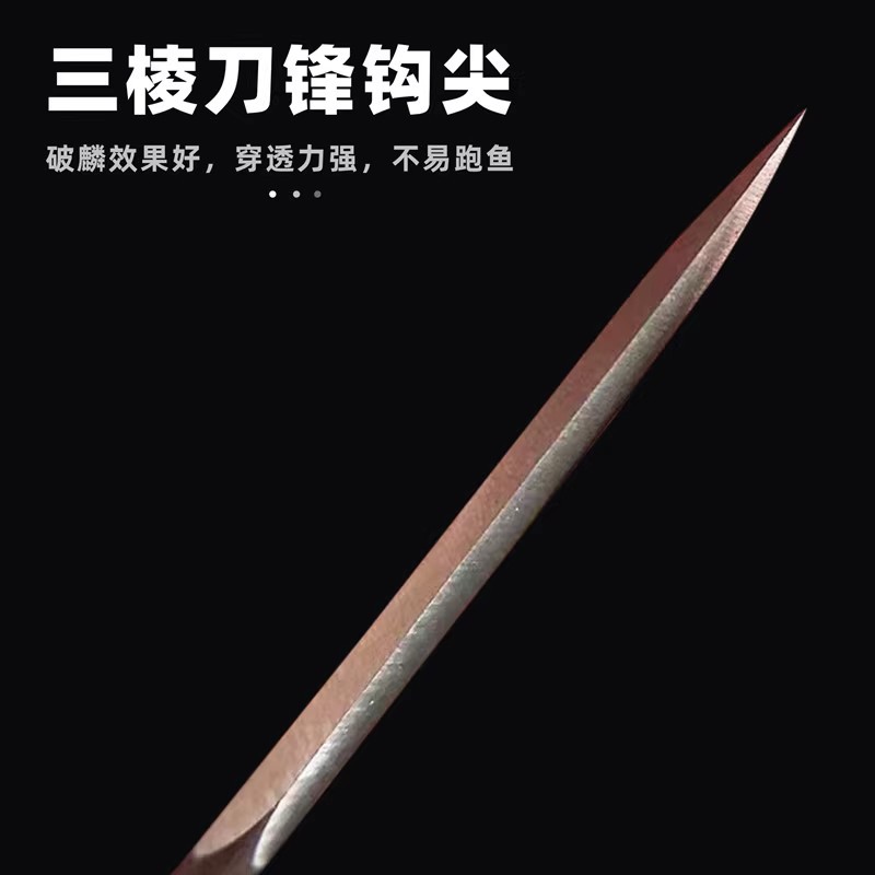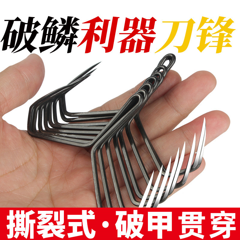 メーカーの刃の三角のアンカーは魚のうろこを破って背中を開けてうろこの甲の三爪のフックを通します。