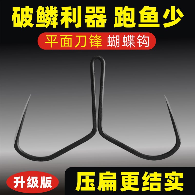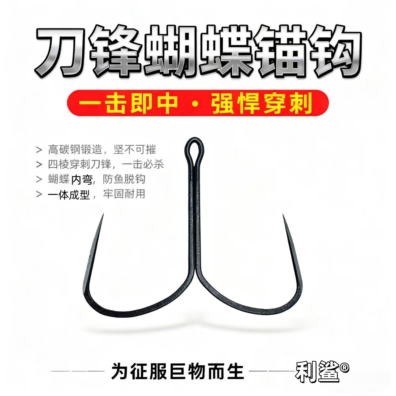 利鲨加强版平面破麟长柄蝴蝶钩路亚锚鱼钩二爪开背破甲手研刀锋钩