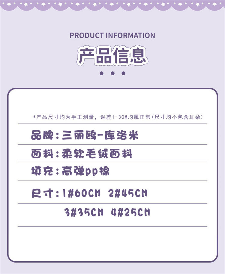 暗黒制服クロミぬいぐるみサンリオ人形クロミ美楽ティ人形抱き枕メーカー卸売り