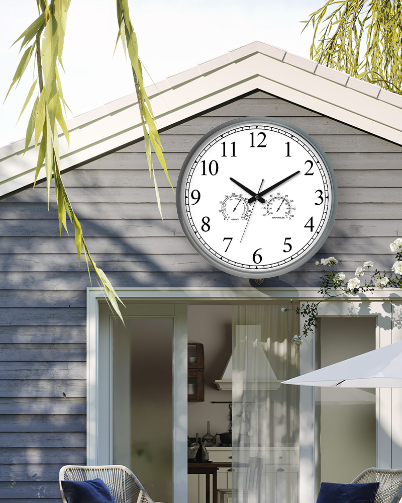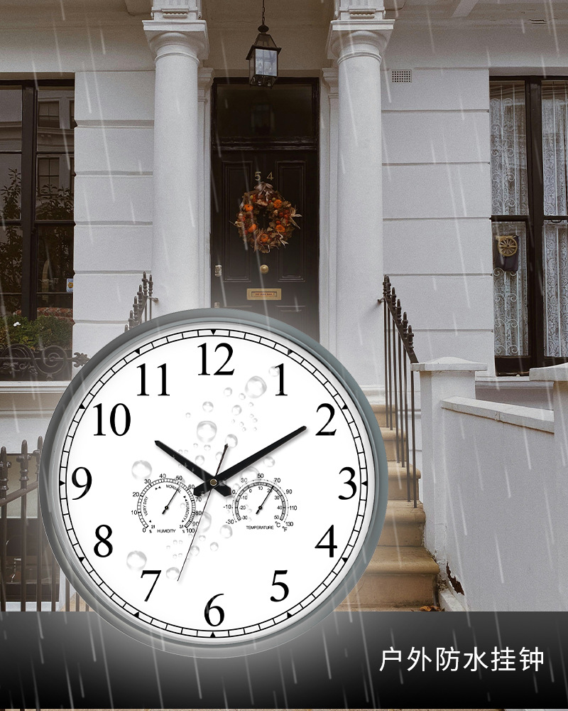 此款挂钟户外防水挂钟,可挂户外花园防晒,防雨水等,可接受各类定制!