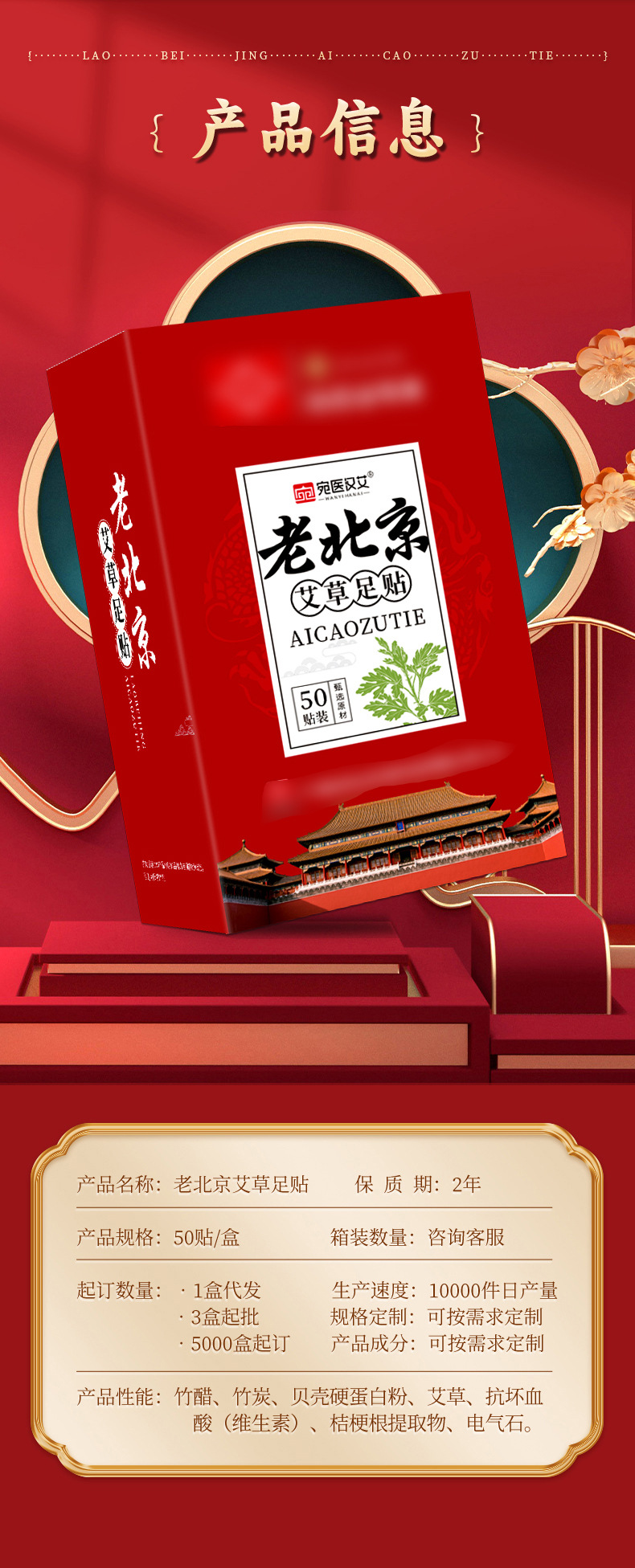 老北京艾草足裏パッチ 竹酢足裏パッチ 睡眠用50枚入り 家庭用卸売 老北京足裏パッチメーカー 現物卸売