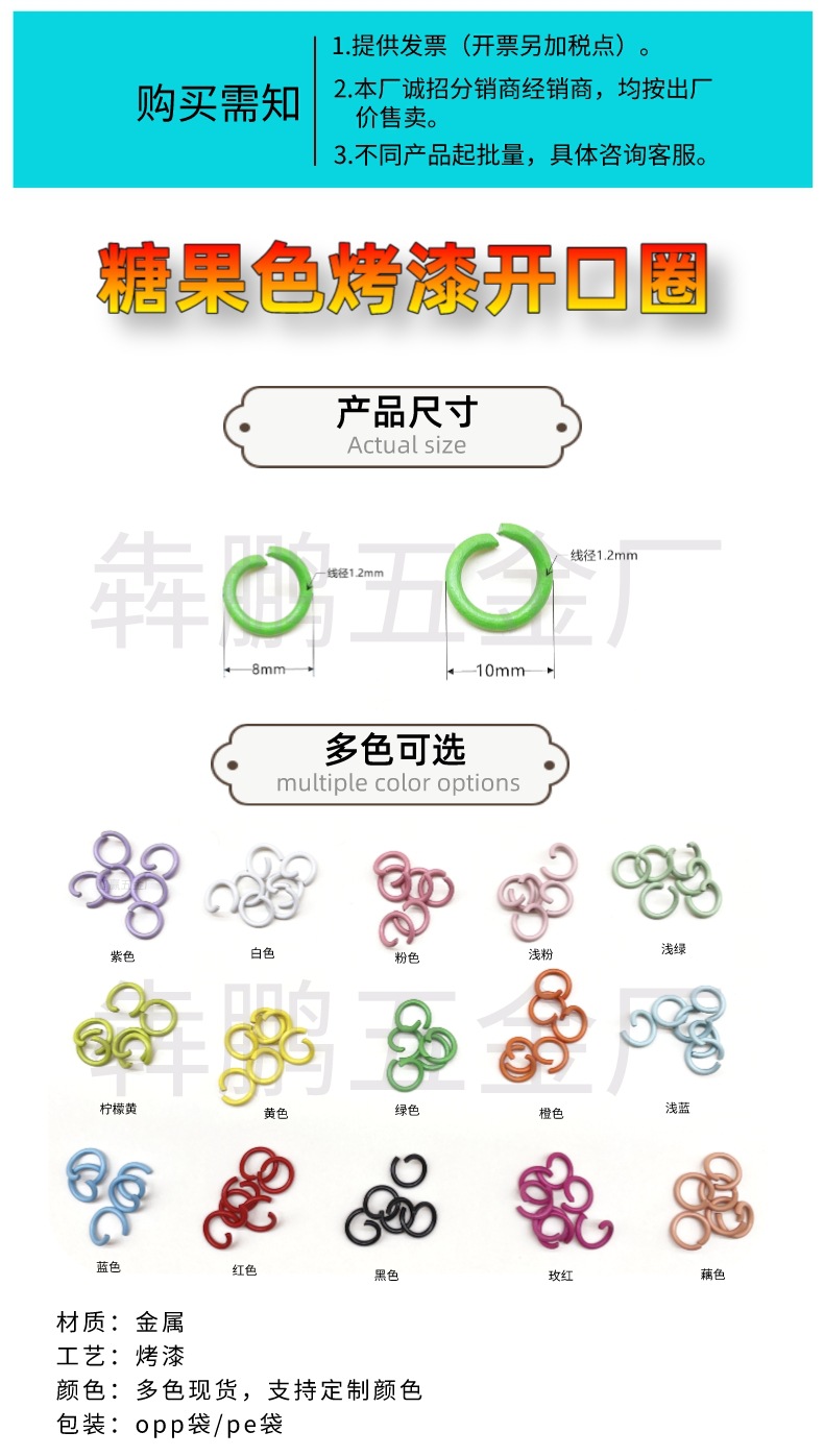 カラーペイントオープニングリングdiyアクセサリーアクセサリー手作りの接続リングキャンディー色のキーホルダーオープンリングoリング