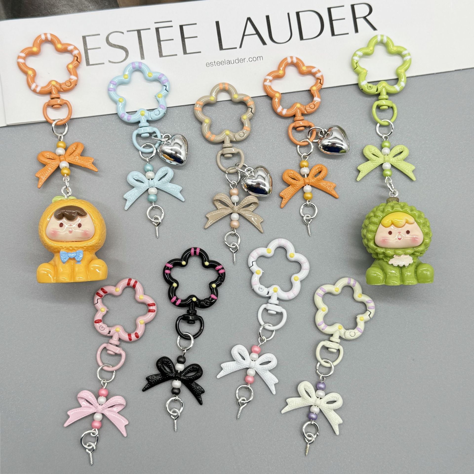 キャンディー色の蝶結びのキーホルダーのカラースプリングはかわいいカバンを掛けます。