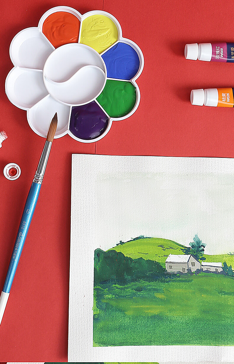 迷你水彩颜料亚克力盒随身便携手账本写生旅行绘画画本调色小画板