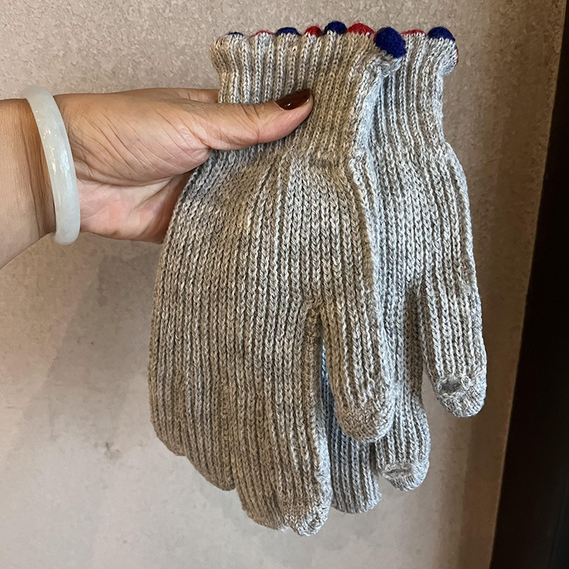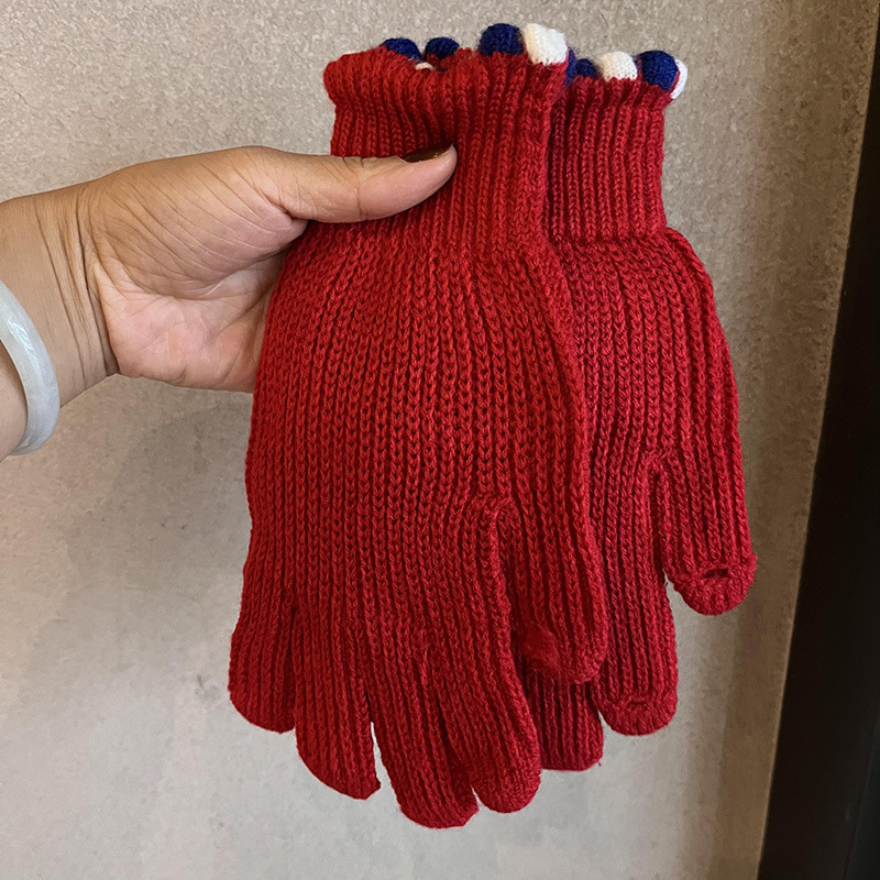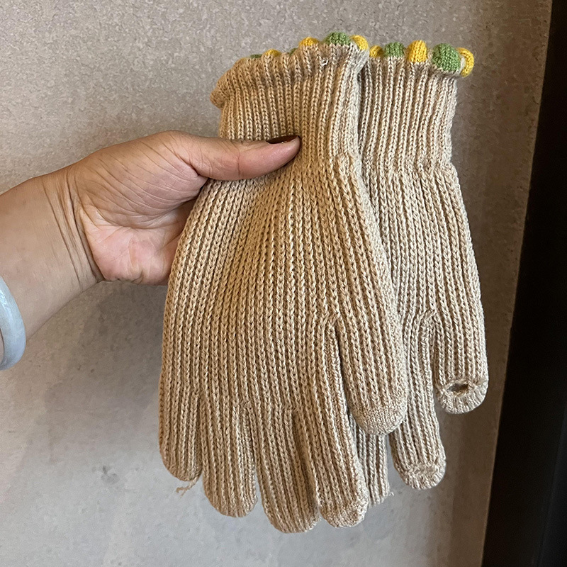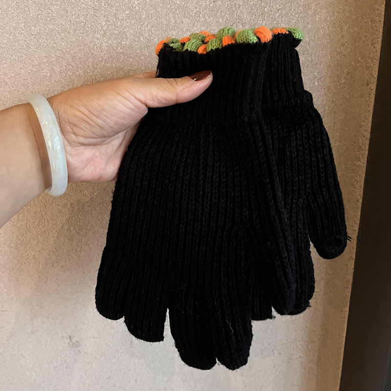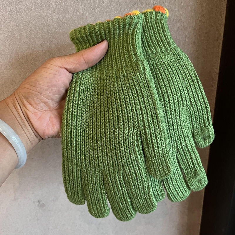 多巴胺加长彩色保暖手套女冬季针织可触屏露指五指防寒学生骑车潮