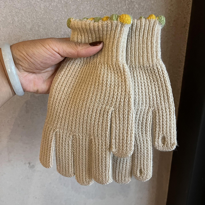 韓国のかわいい刺繍入りクマの女の子ニットタッチ可能な学生手袋秋と冬多用途暖かいサイクリング指なし手袋