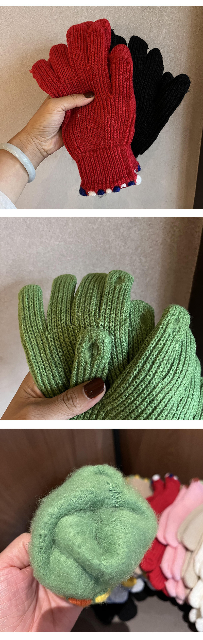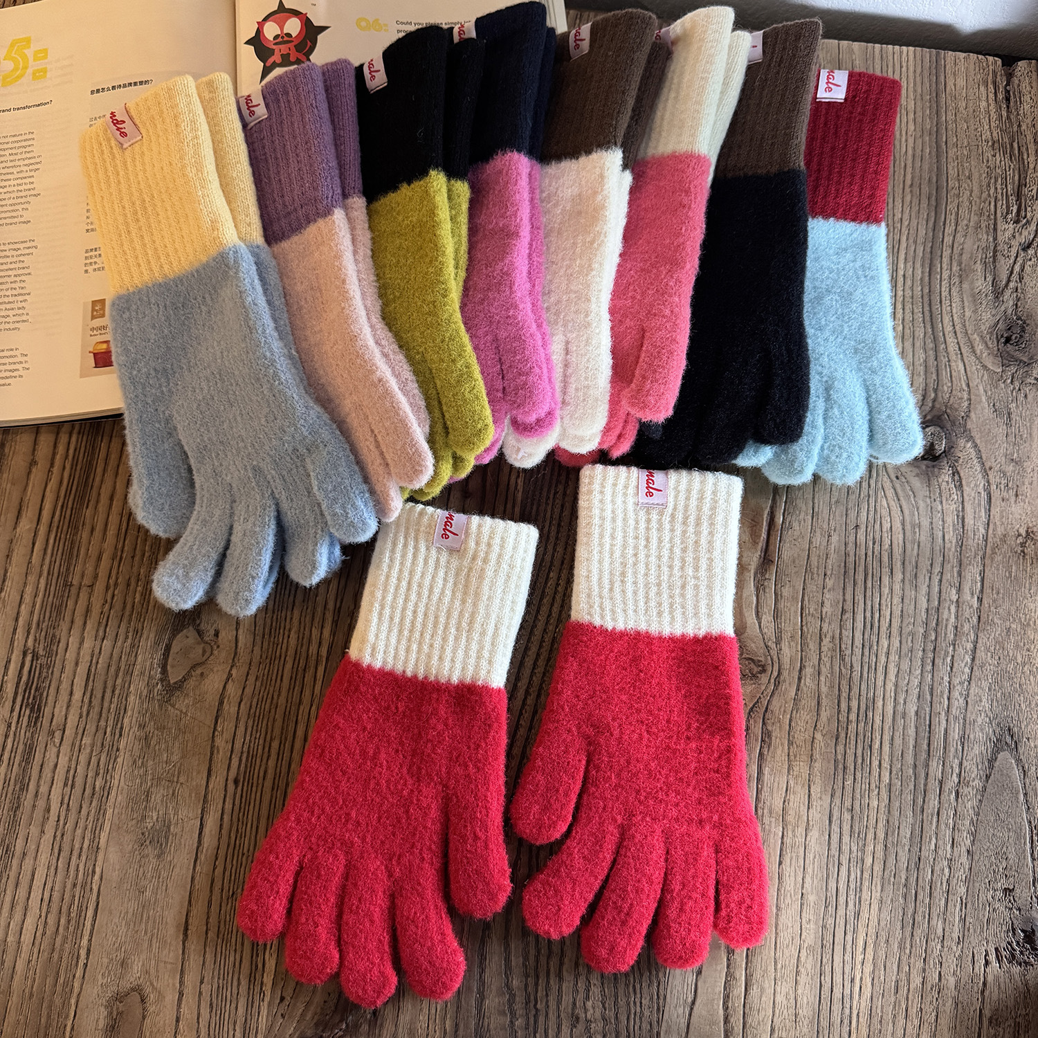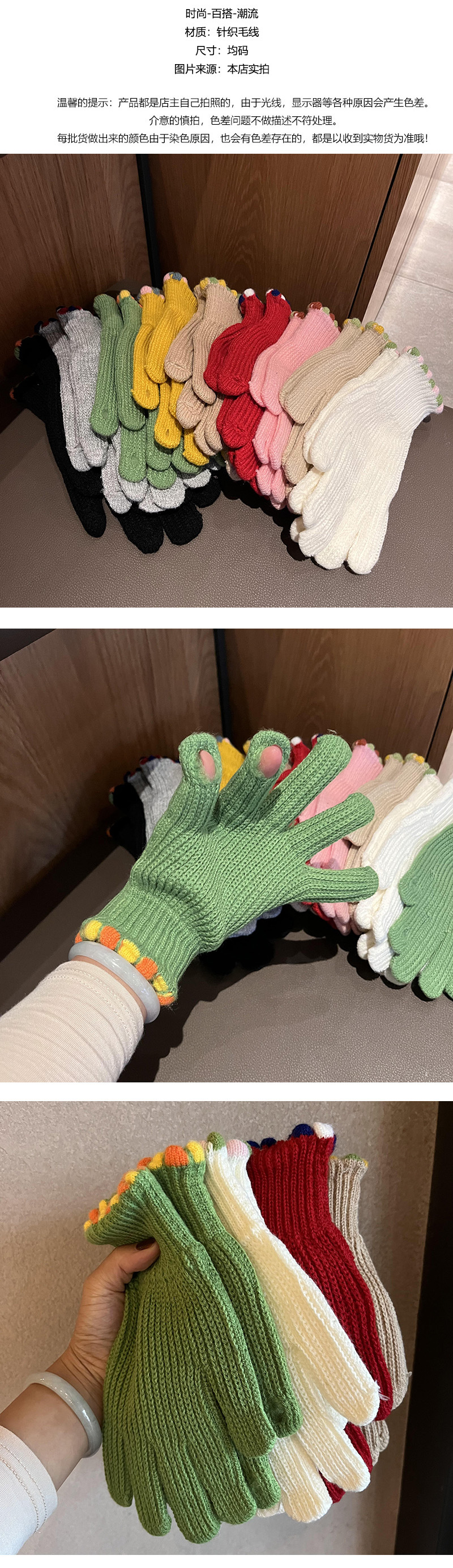 韓国系insキャンディー色秋冬純色ウサギ毛手袋保温防寒ニット毛糸百合学生カップル女性