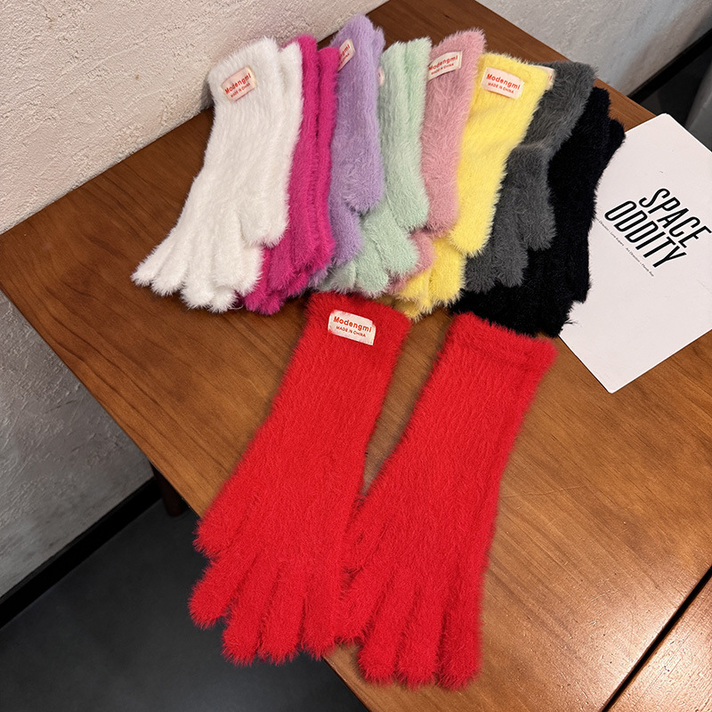 Ins純色騎乗手袋学生かわいい百合防寒保温指毛ニットウサギ毛混紡女性冬