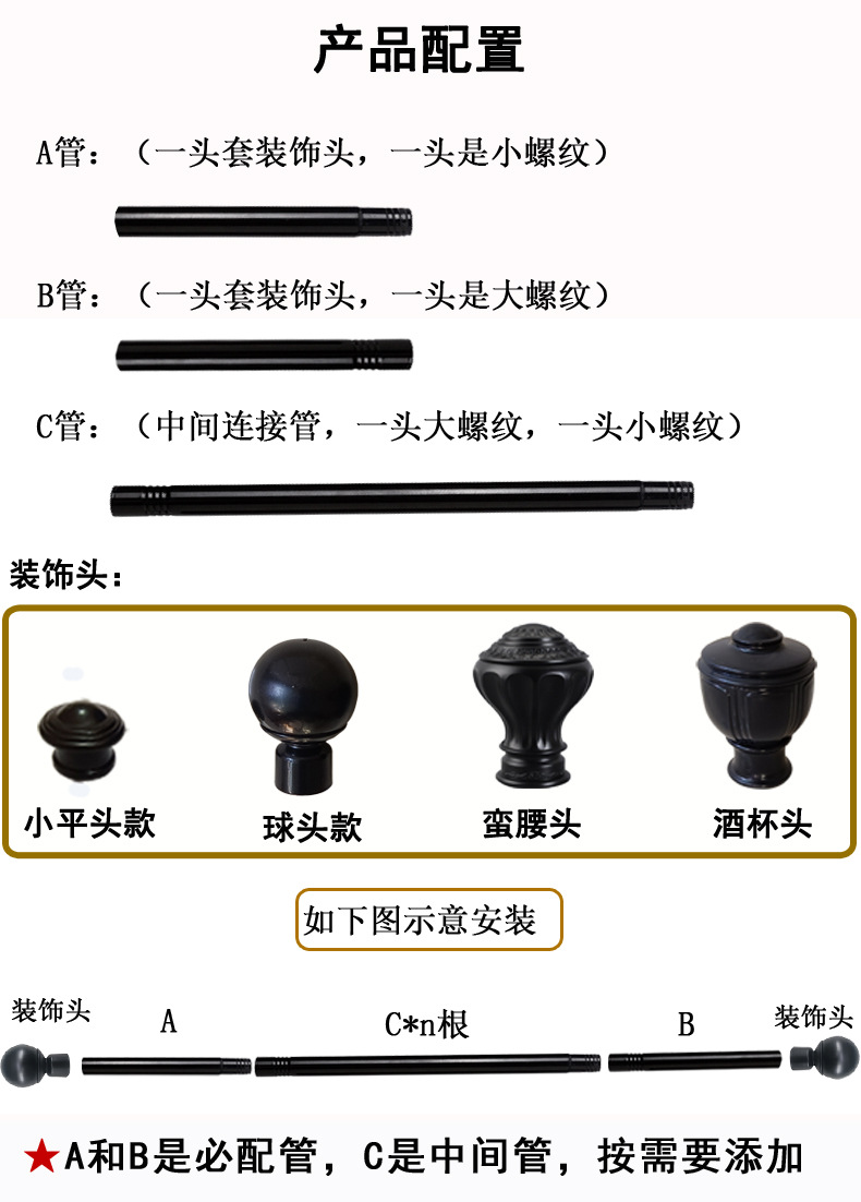 【产品尺寸】:单节C管长40 cm,A管和B管20 CM