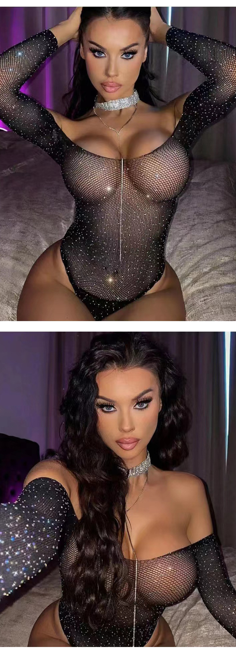 ビキニのセクシーな下着をドリルして満天の星の連体の長袖のネットの服の制服をくぐって誘惑します。