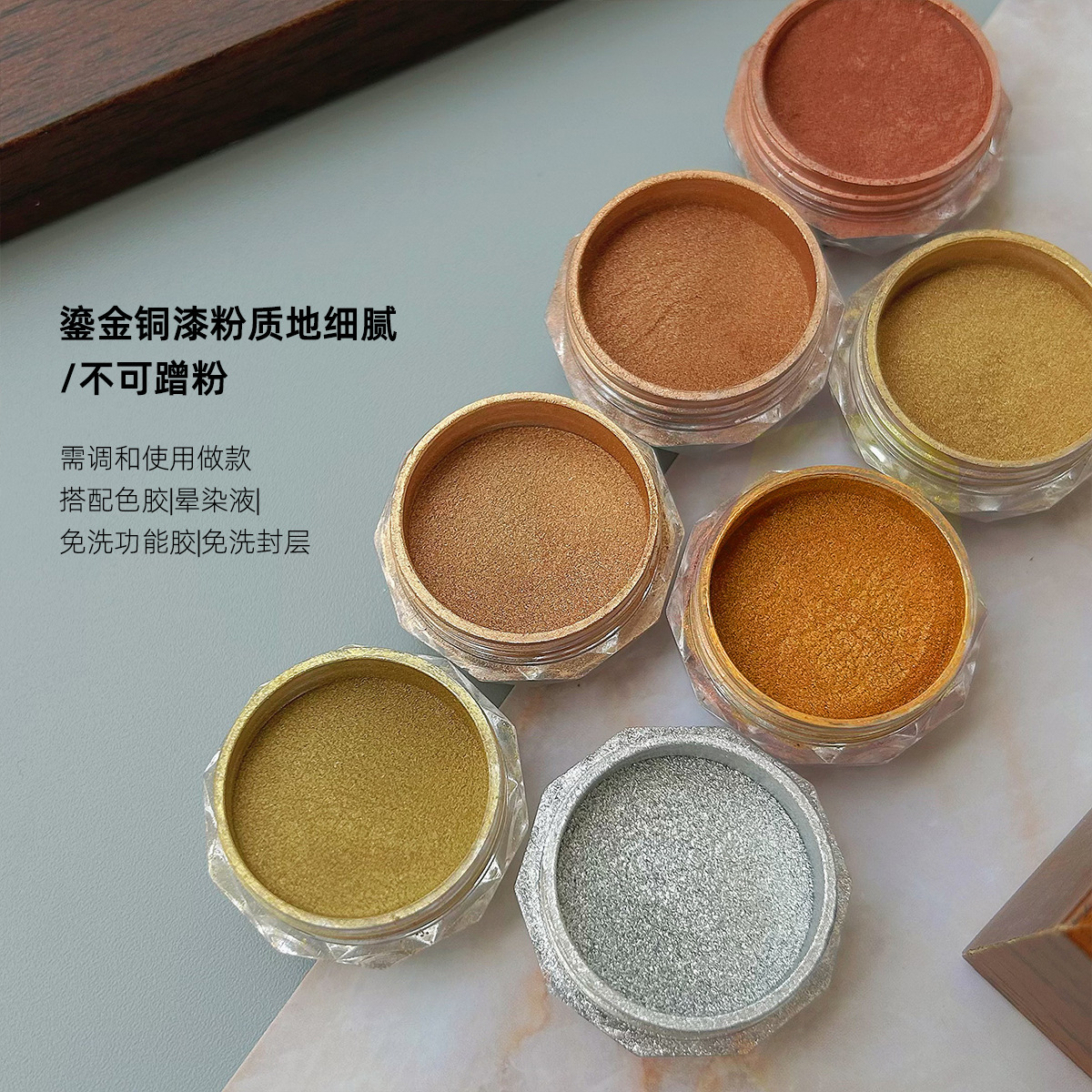 网红同款鎏金铜漆粉大地色系细腻晕染可调和色胶造型胶用不可蹭粉