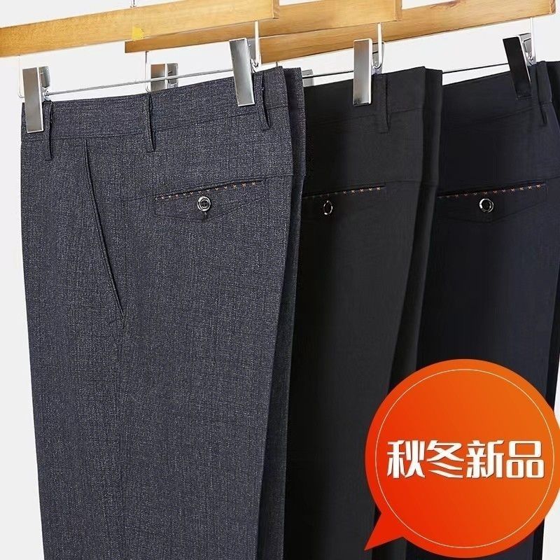 春秋厚款中老年休闲裤男士西裤抗皱高腰深裆宽松直筒爸爸男裤保暖