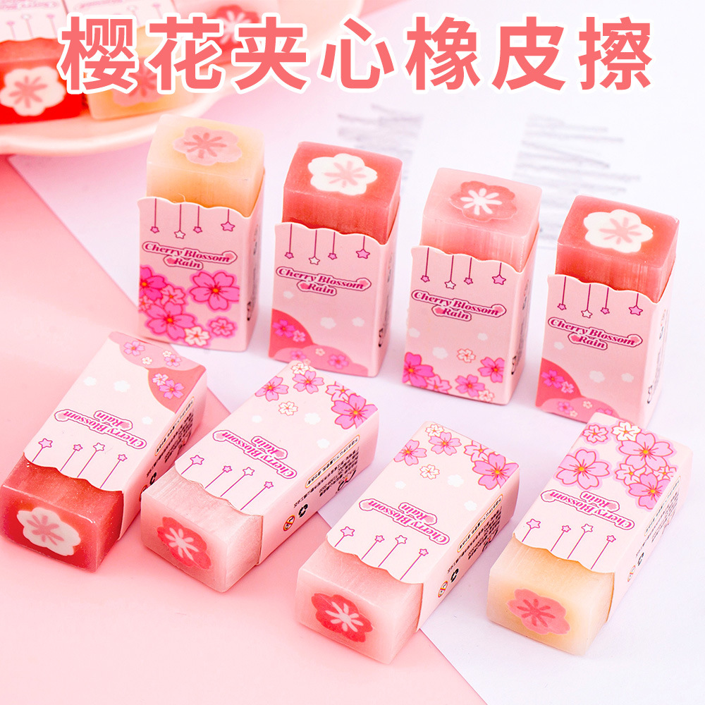 クリエイティブ桜サンドイッチ消しゴム子供かわいい高颜値少屑消しゴム小学生スライス消しゴム文房具