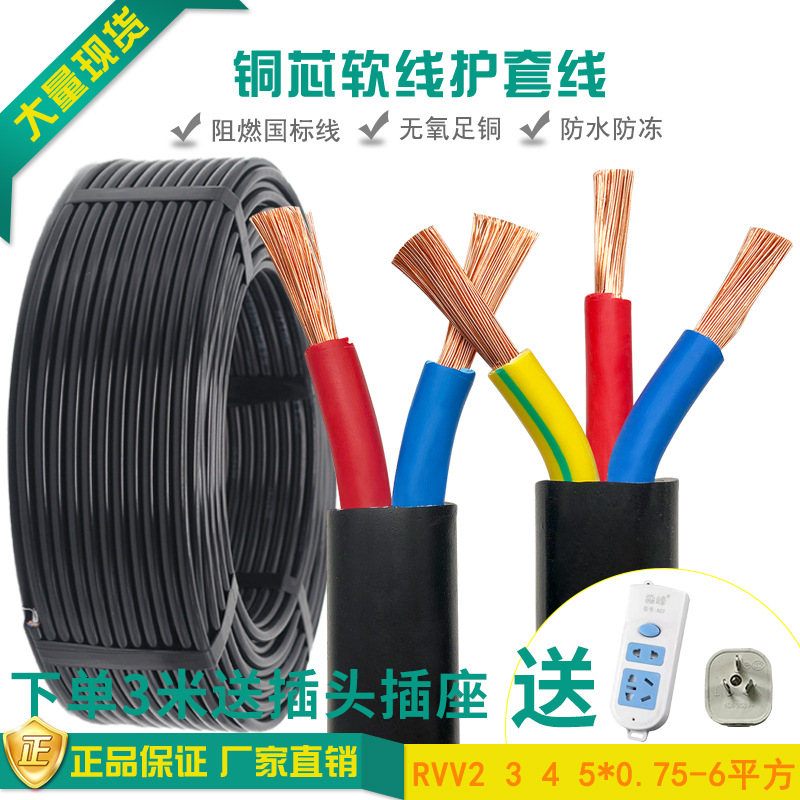 ジャケット線無酸素銅国標2芯3芯4芯5芯4 6 2.5平方家庭用電線ケーブル三相線