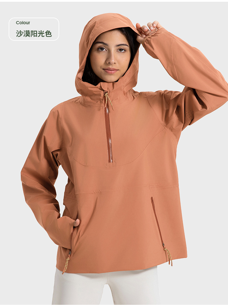 男女兼用 フード付きハーフジップジャケット 防水防風 アウトドアカジュアル ランニング フィットネス スポーツジャケット DAW040