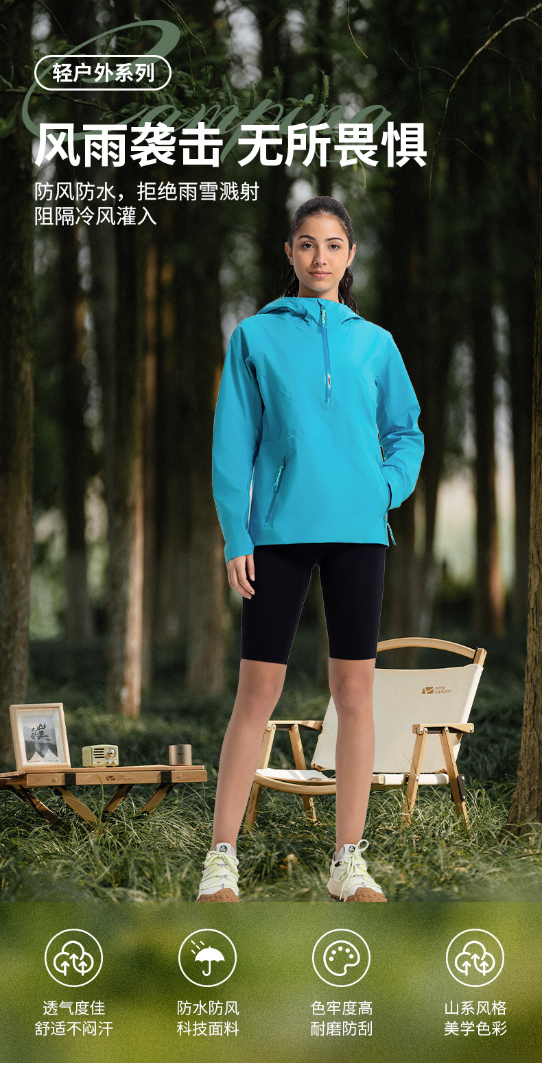秋季新款多功能连帽外套女防风防水户外透气宽松风衣短款D25126