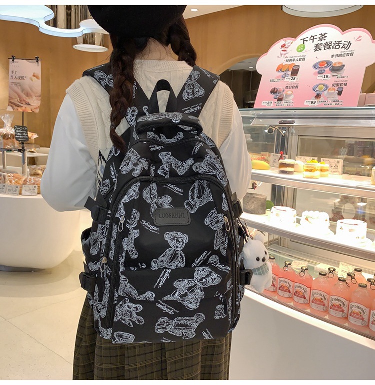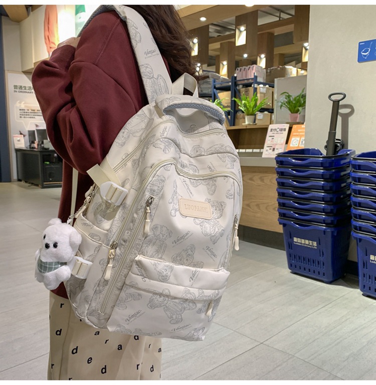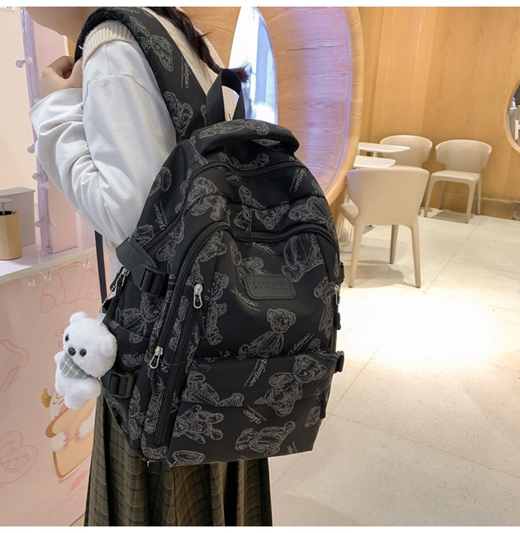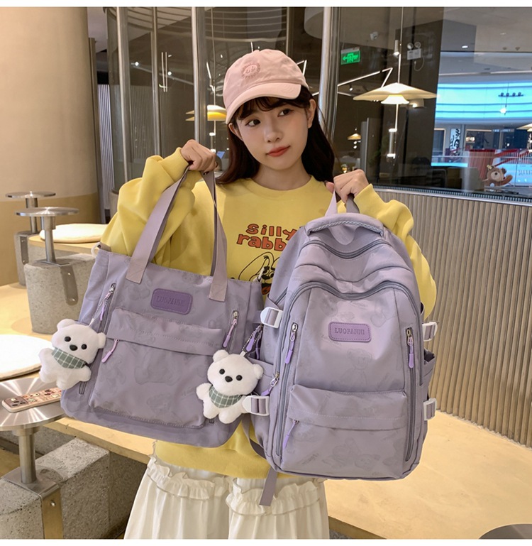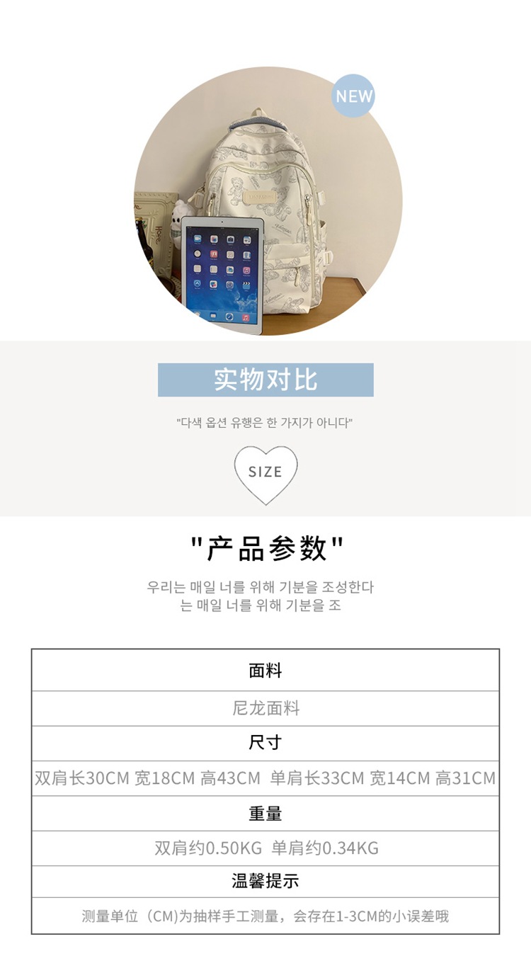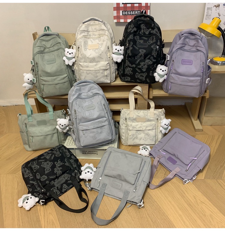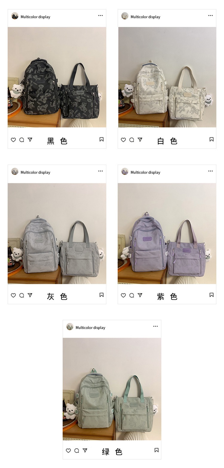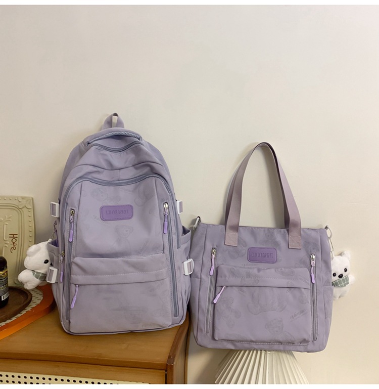 2024秋新商品学生バッグ韓国版純色ナイロン防水学生リュックサックシンプル清新男女リュックサック