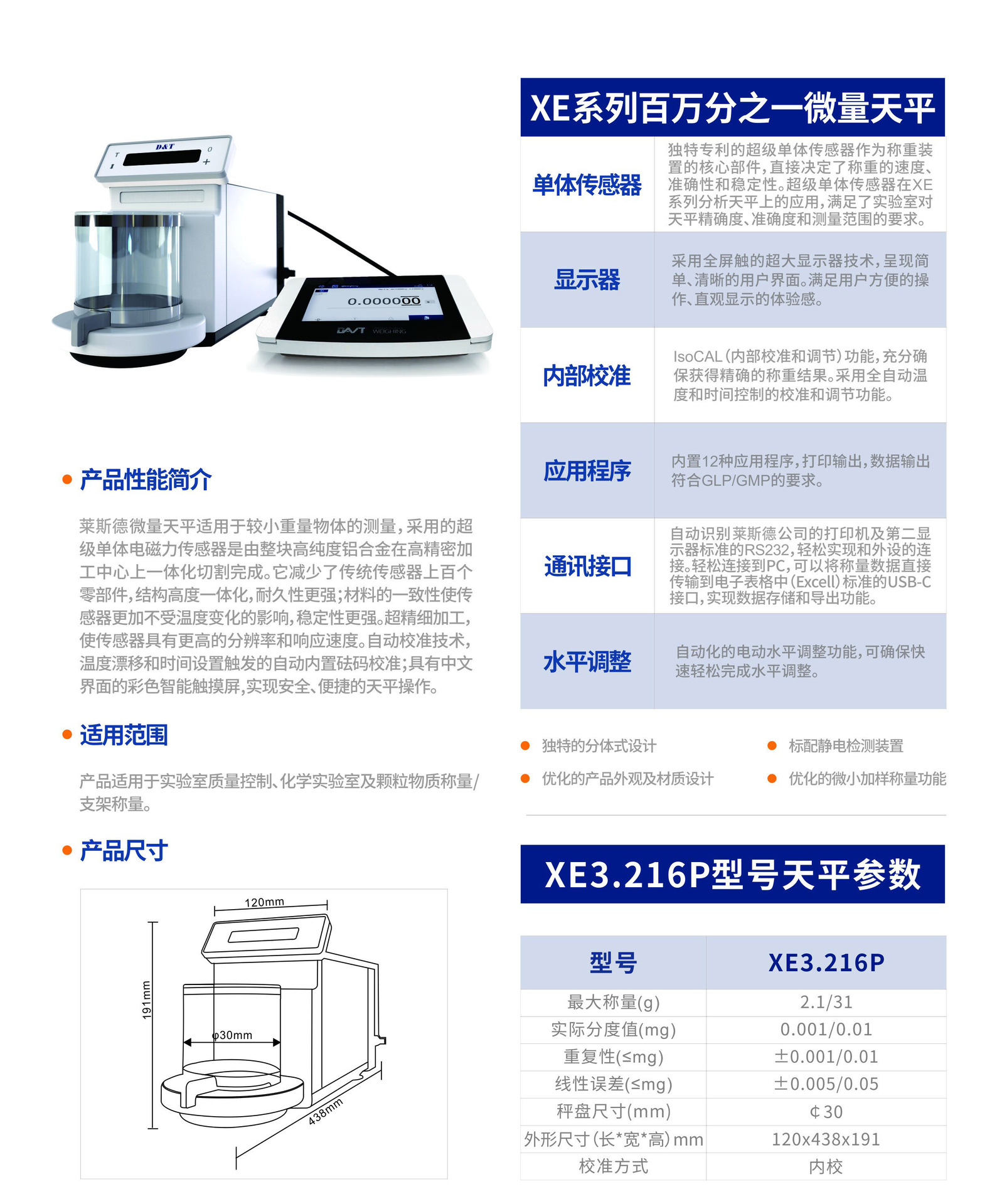 莱斯德推出的微量天平适用于较小重量物体的测量,其量程分为2.1g-5.1g,可读性为0.001mg 专业级全自动校准技术,温度漂移和时间设置触发的自动内置砝码校准;卓越的无线感应器,实现无需用手接触的称量操作;具有中文界面的彩色智能触摸屏,实现安全、便捷的天平操作。
