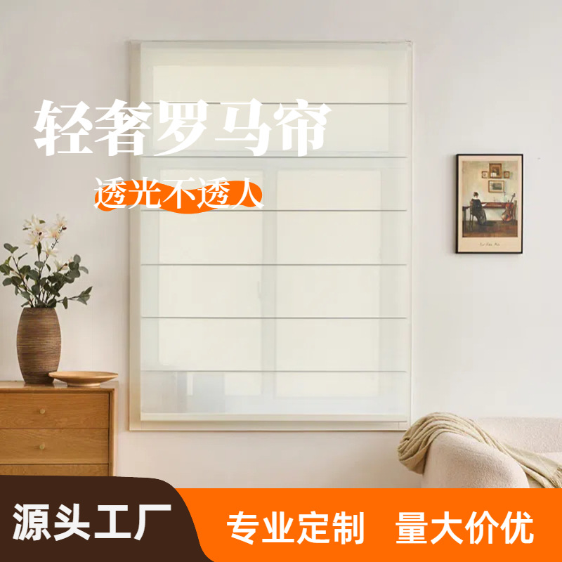 バルコニー、寝室、透光性と不透明性のあるリビングルームの出窓用の遮光ローマンブラインド、ドリームスタックカーテン、工場でカスタマイズされたログクリームスタイル