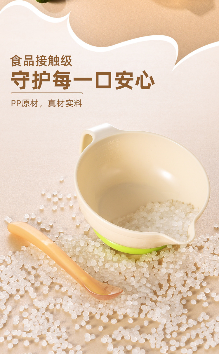 赤ちゃんの補助食器子供のアヒルの口は米ペーストを食べます。