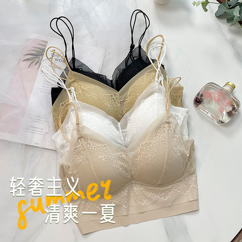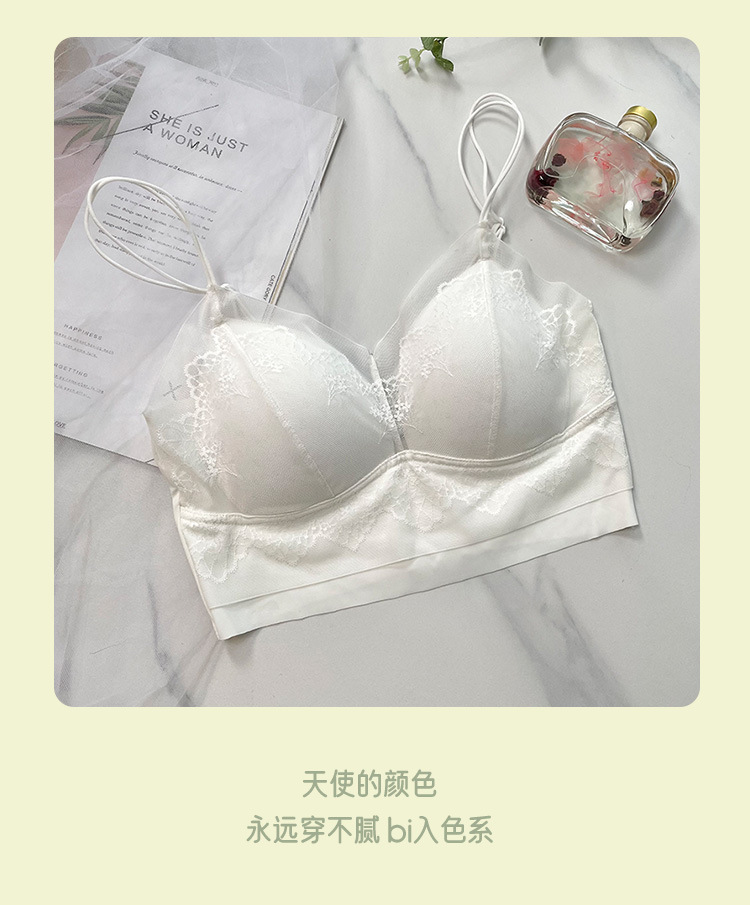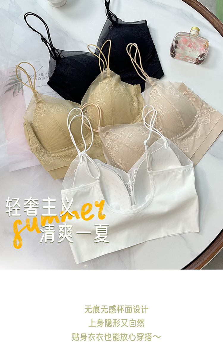 法式蕾丝冰丝无痕内衣女透气裹舒适无钢圈小胸聚拢吊带美背文胸女