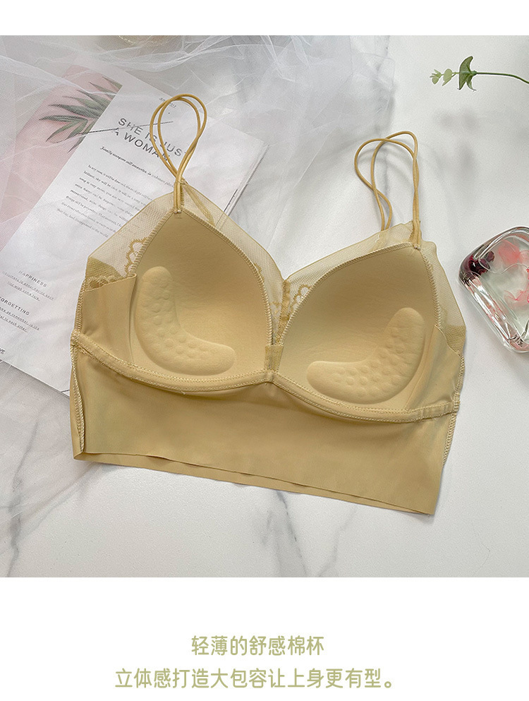 爆発金ココア同型フランスレース無痕氷糸ベスト女性吸汗通気固定ラテックスクッション胸美背