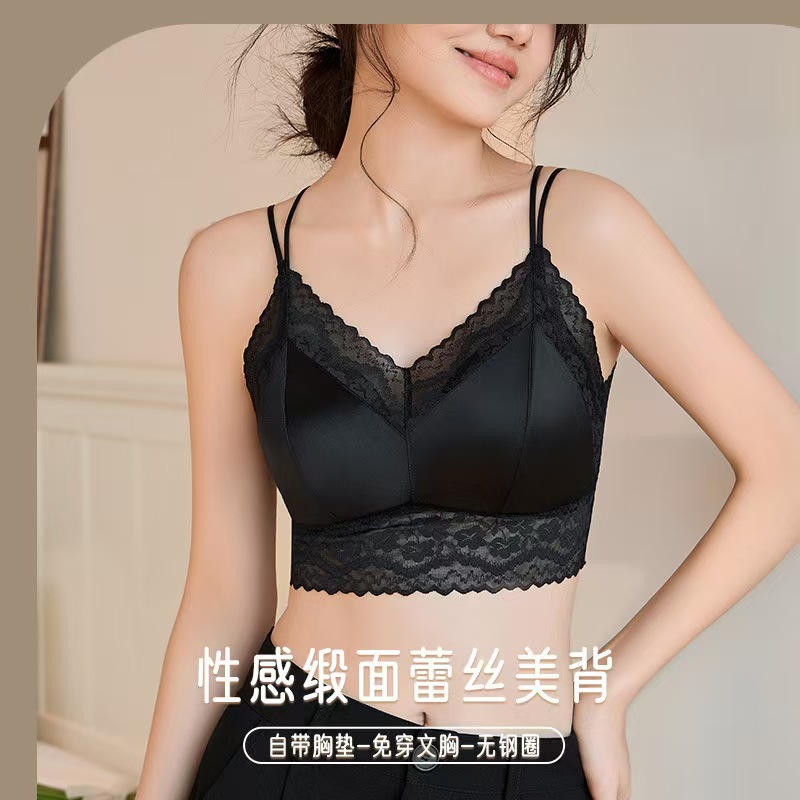 2025年に起爆したサテンレースの美背さんは、通気性のある胸パッドの中にストラップのベストの女性を集めていない