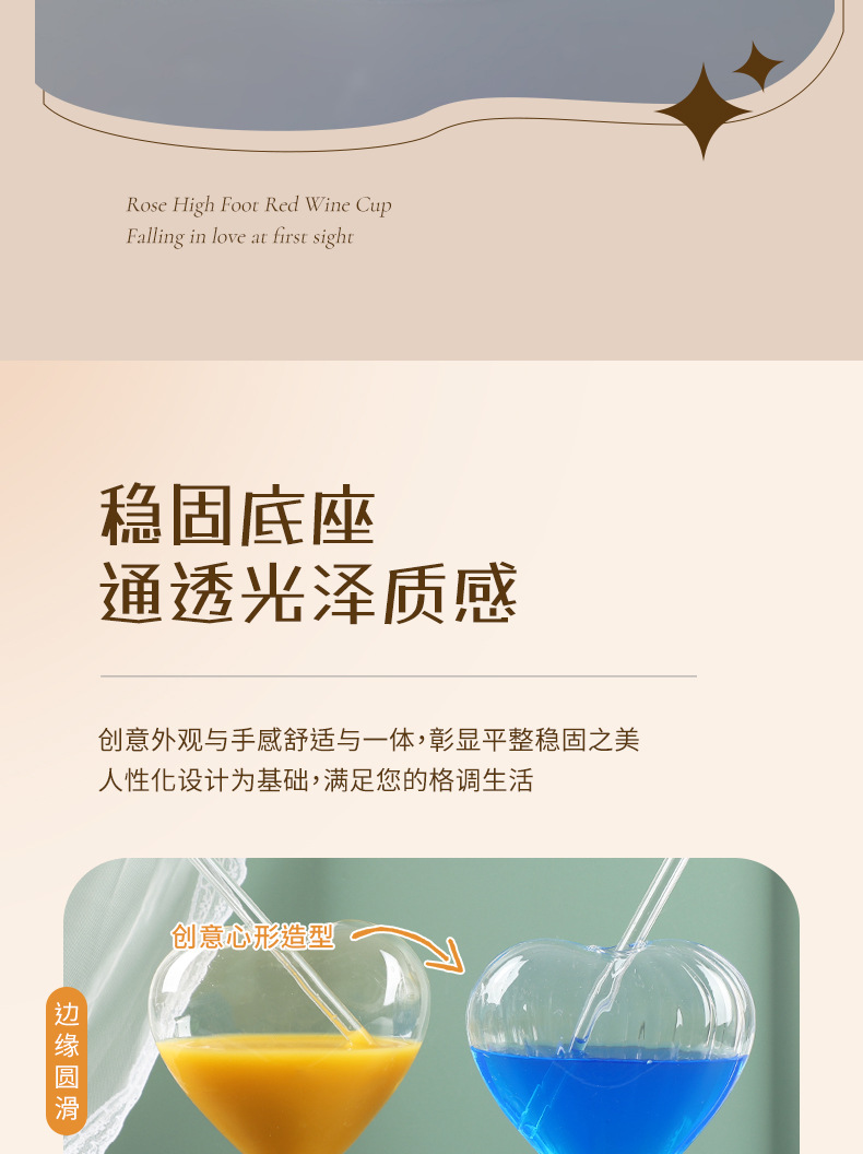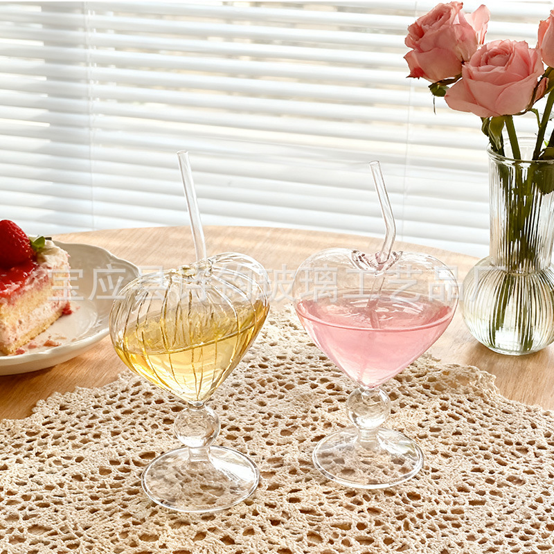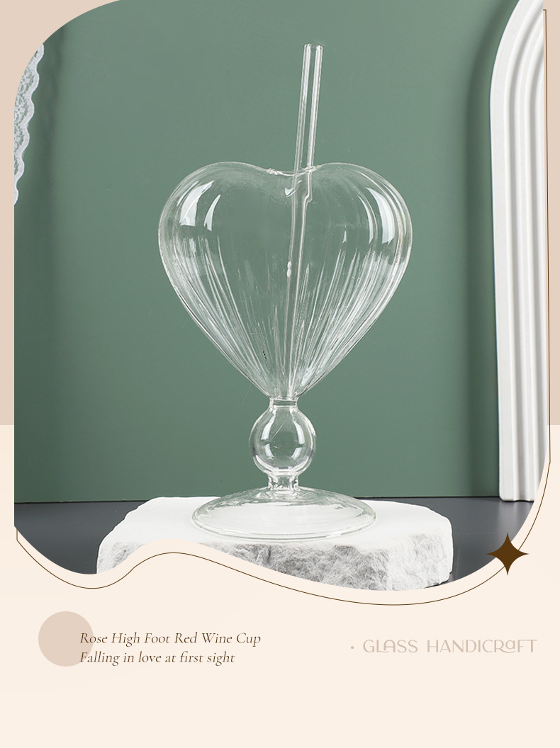ins高颜值爱心吸管玻璃酒杯 网红个性酒吧调酒杯鸡尾酒杯果汁杯