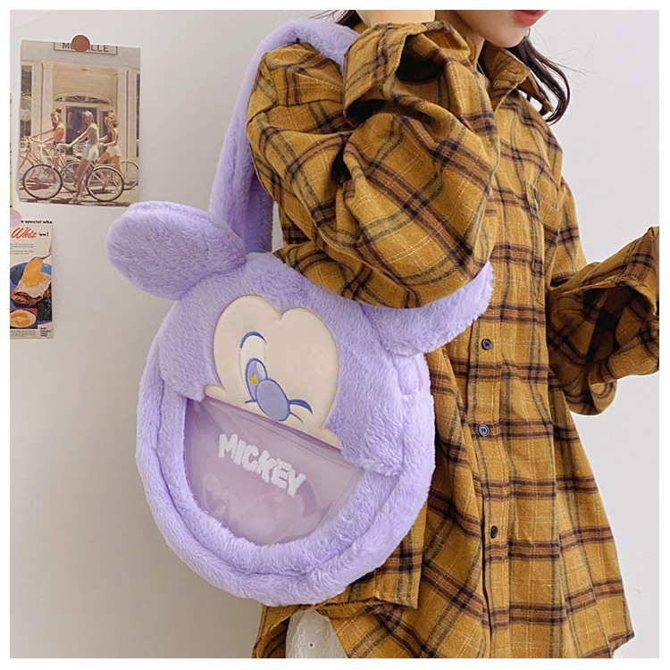 韓国版アニメのぬいぐるみショルダーバッグかわいいウサギins巾着バッグ毛むくじゃらショルダーバッグ女の子誕生日プレゼント