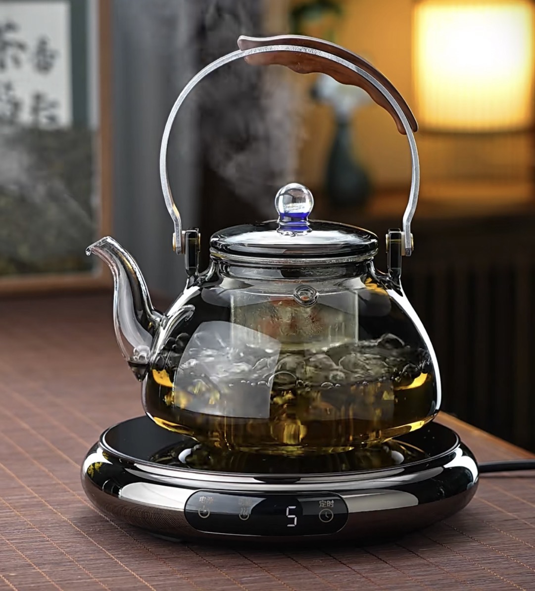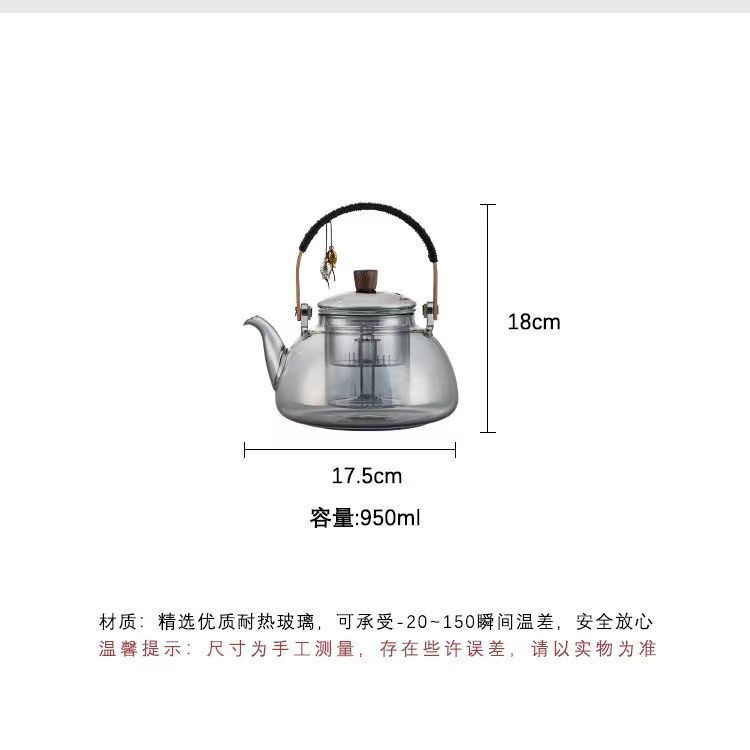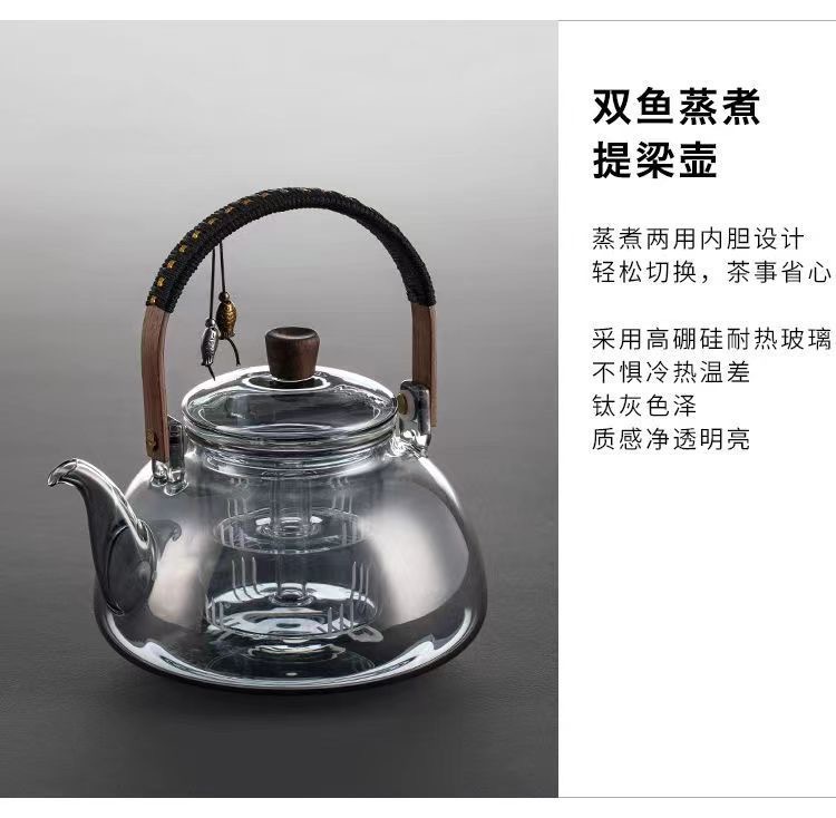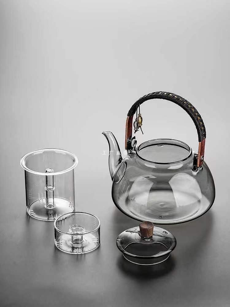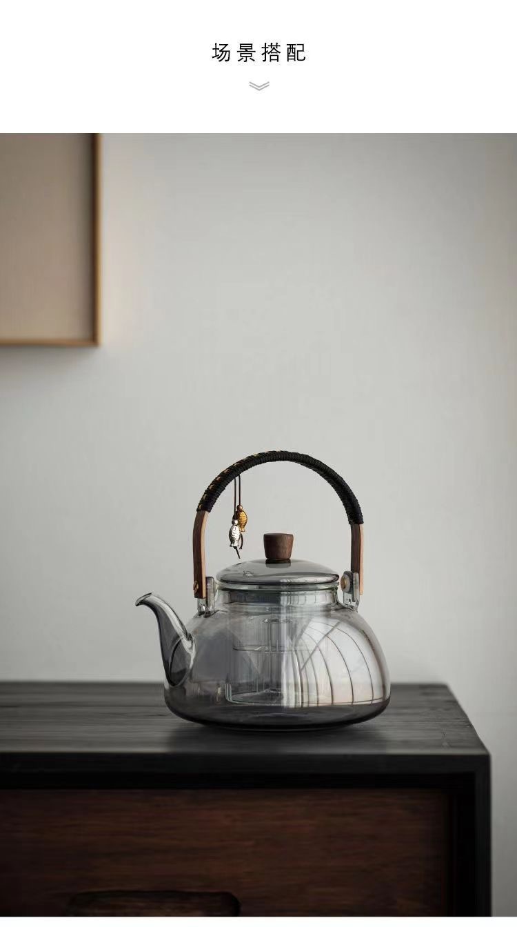 現物供給蒸煮一体提梁壺煙灰色大容量木蓋ガラス急須囲炉煮急須