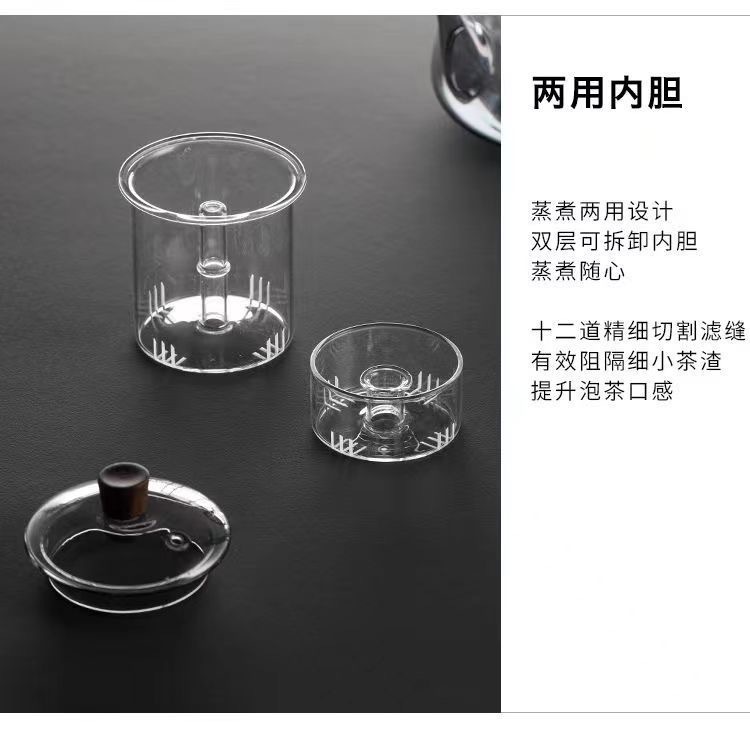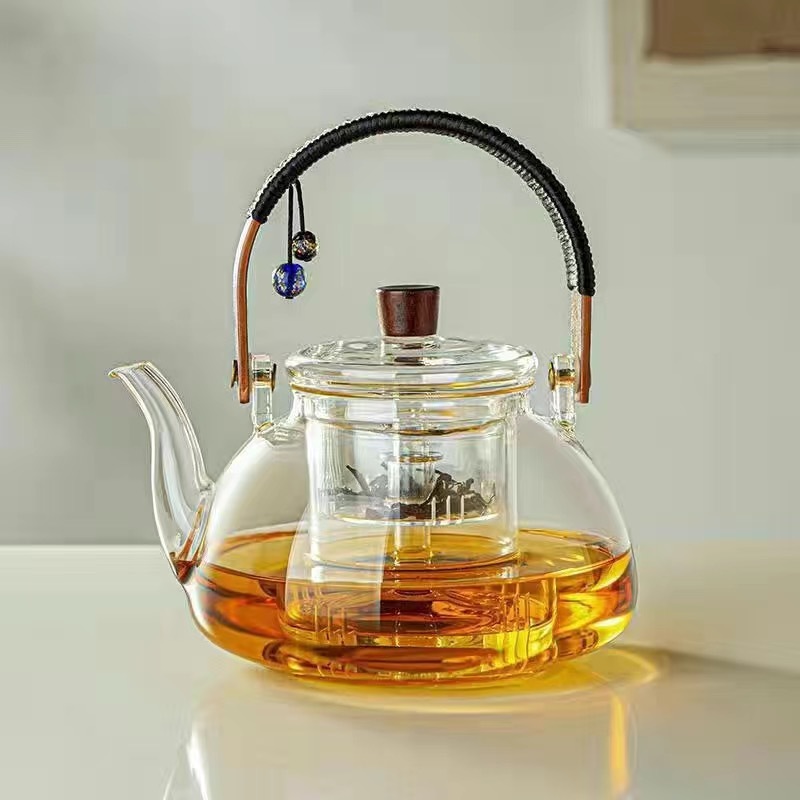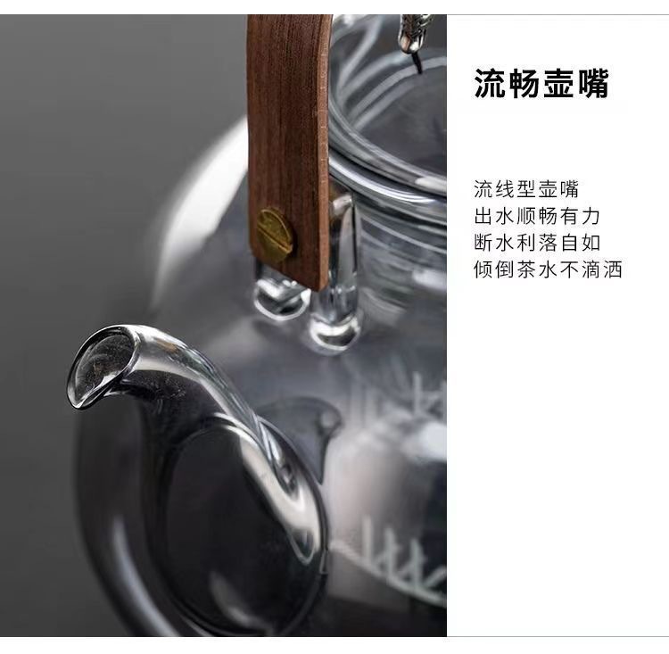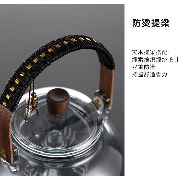 新型の胡桃木蒸煮一体提梁壺ネット赤囲炉ガラス壺急須耐熱高温煮急須卸売り