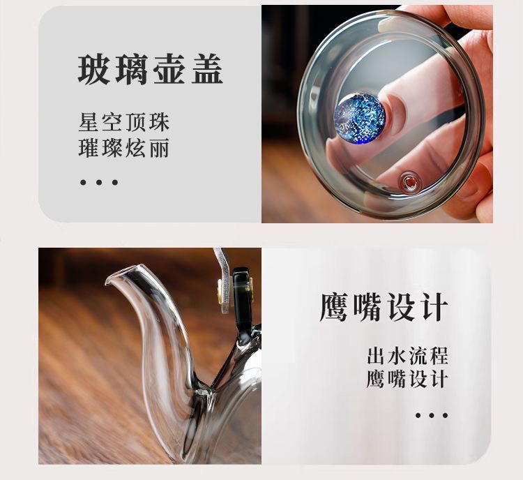 耐熱星空提梁蒸煮高ホウ素シリコンガラスメーカー煮ティーポットセット星空トップビーズ高級タバコグレー
