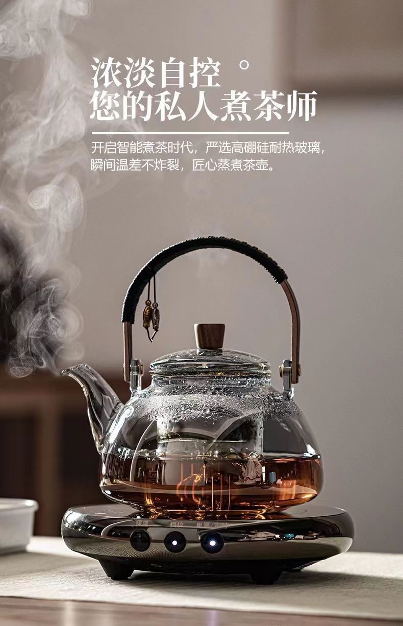 新型ガラス煮急須蒸煮一体四代提梁壺半月壺振音熱推半半月提梁壺