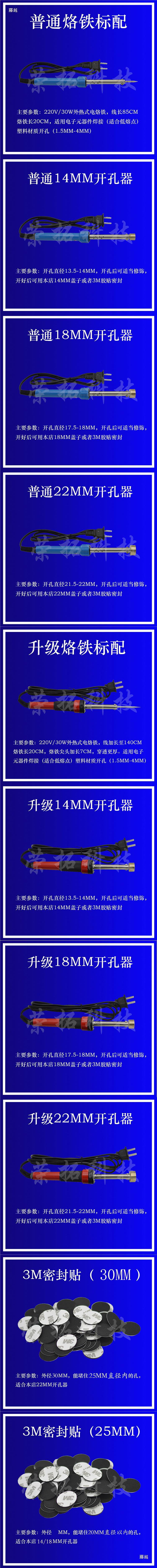 モデル 通常のはんだごて標準,通常の14MMホールオープナー,通常の18MMホールオープナー,通常の22MMホールオープナー,アップグレードされたはんだごての標準構成,アップグレードされた14MMホールオープナー,アップグレードされた18MMホールオープナー,アップグレードされた22MMホールオープナー,シーリングステッカー (25MM*10 枚) 2 枚購入すると 2 枚無料,ゴム栓 (14MM*10 個) 2 個購入すると 2 個無料,ゴム栓 (18MM*10 個) 2 個購入すると 2 個無料,ゴム栓 (22MM*10 個) 2 個購入すると 2 個無料,オープンホールヘッド (14MM),オープンホールヘッド (18MM),オープンホールヘッド (22MM),尖った頭+ロジン+はんだ線,ファンネル+ブラシ+耳掃除ボール,シーリングステッカー (30MM*10 枚) 2 枚購入すると 2 枚無料