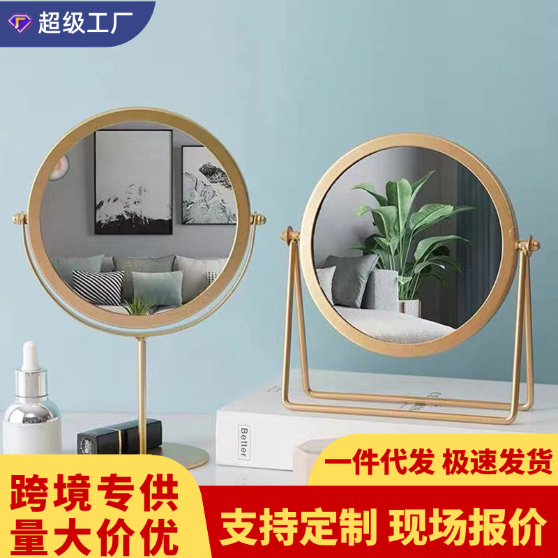 ネット赤デスクトップ化粧鏡家庭用化粧鏡寮女子学生のデスクトップ鏡シンプルな携帯鏡回転ins