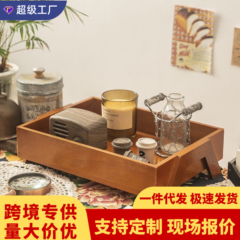 实木质桌面收纳盒复古香水化妆品杂物整理盒置物架玄关钥匙储物盘