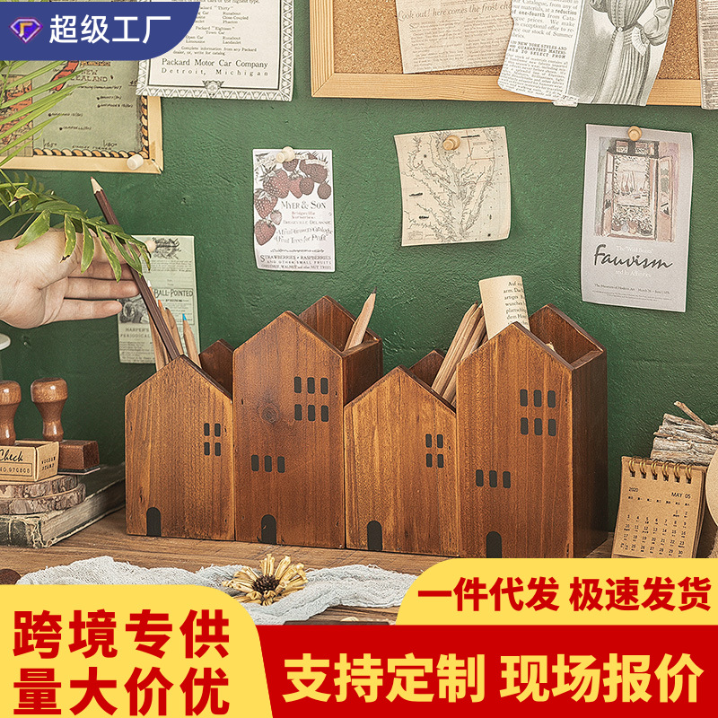 筆筒日本式復古机創意置物絵筆カラー鉛化粧ブラシ桶オフィス木製デスクトップ収納ケース