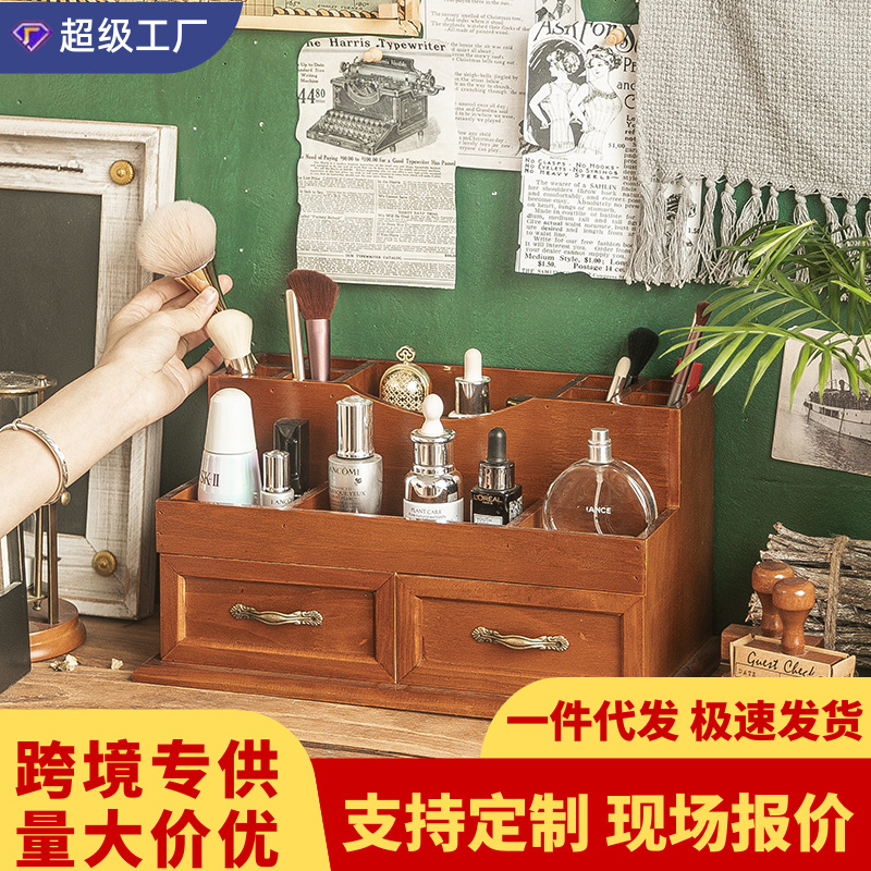 実木化粧品収納ケースデスクトップレトロ棚アクセサリーケース高級精致引き出し式防塵キャビネット