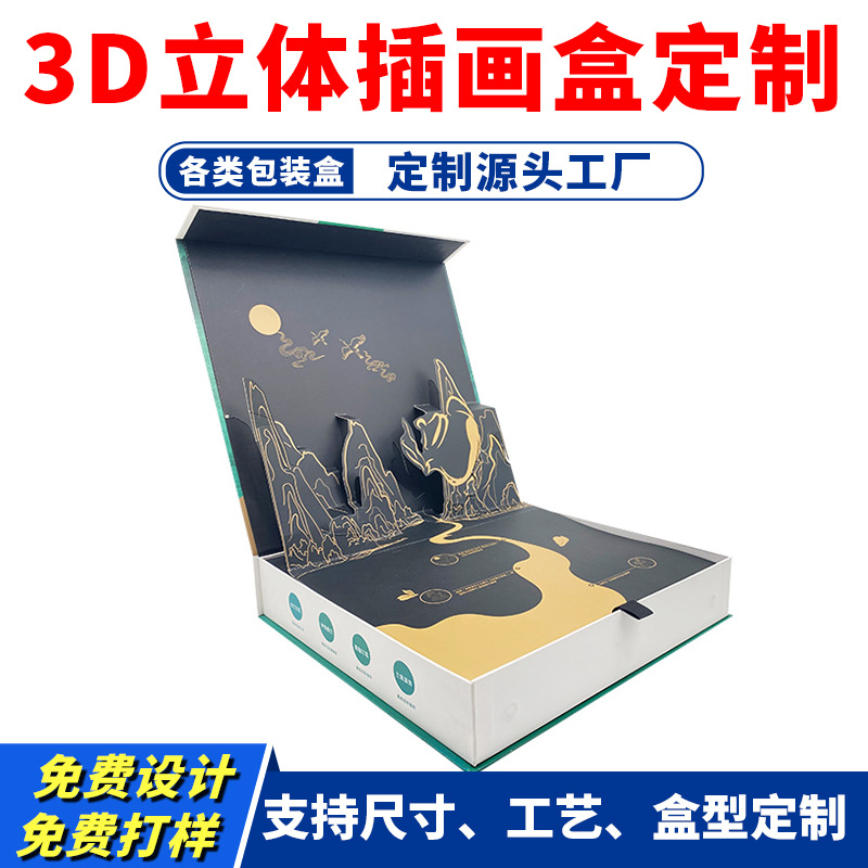 3d立体イラスト箱包装メーカーオーダーメイド国風創意書型マグネットカバー文創立体画ギフトボックス