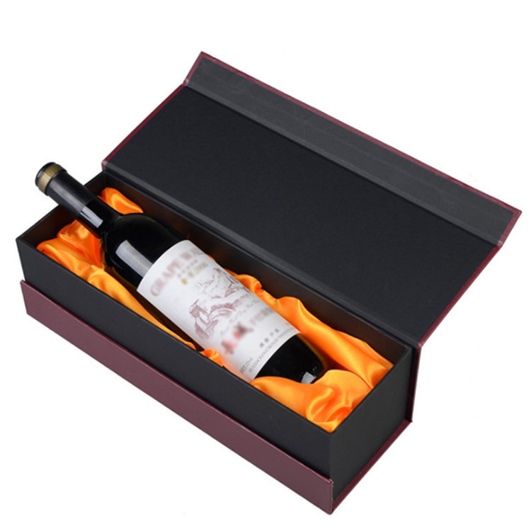 高級シングルワインボックス包装深セン工場カスタムシルク内張り本型カバー磁気吸引白ワインボックス