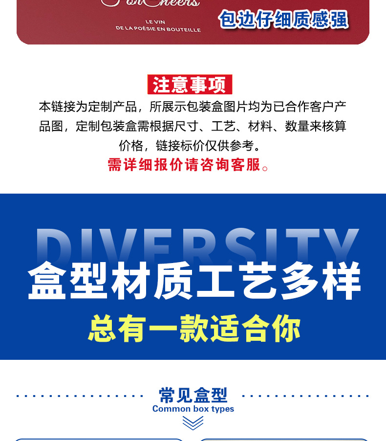 赤ワイン用紙箱、紙製包装箱、ギフトボックス、ワイン用汎用ボトル、単一ボトル用酒箱、赤ワインボトル用箱、赤ワインボトル
