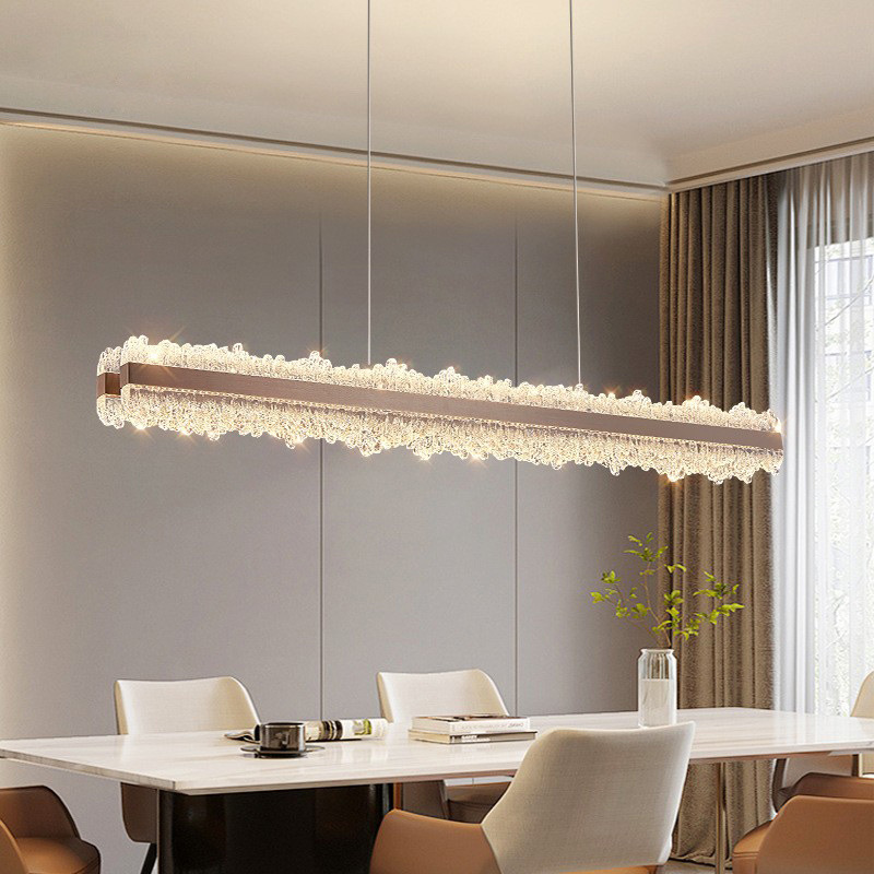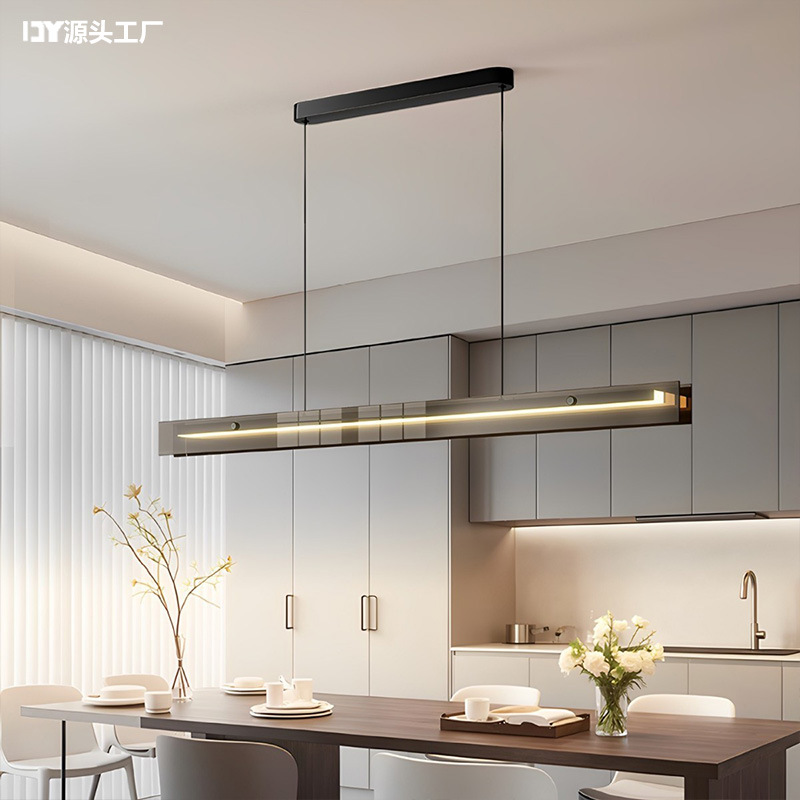 イタリアのミニマリストレストランシャンデリア 2025 新しいダイニングテーブルアイランドバーバークリエイティブデザイナーロングストリップガラスランプ
