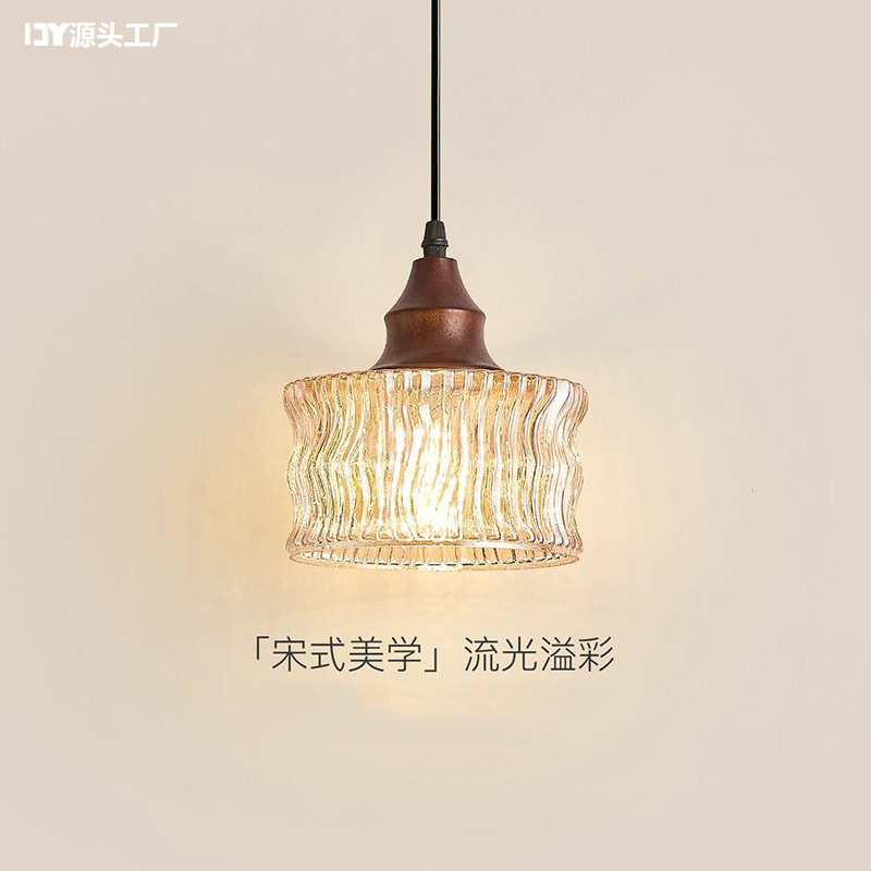 美式复古小吊灯卧室床头灯法式中古风轻奢感玻璃餐厅吊线灯具